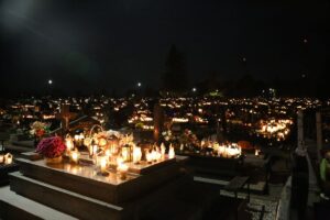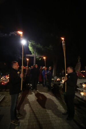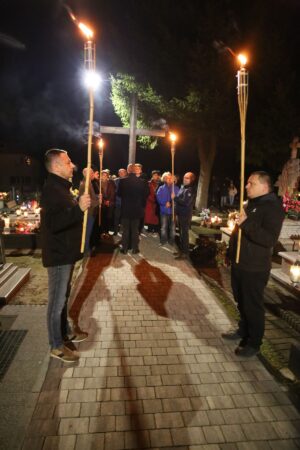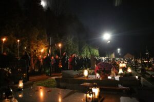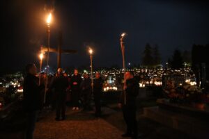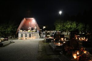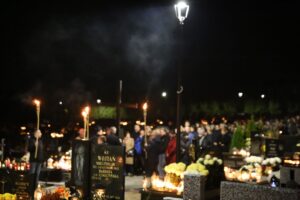 Wieczorem w dniu Wszystkich świętych na janowskim cmentarzu odbyła się Droga krzyżowa w której modliliśmy się za naszych bliskich zmarłych. Rozważania i oprawę muzyczną zapewniła młodzież z obydwu parafii. Licznie zgromadzeni wierni podążali cmentarnymi alejkami niosąc krzyż i rozważając stacje drogi krzyżowej.