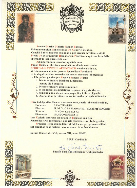 Bożej Większej w Rzymie. Do prośby biskupa i proboszcza została dołączona