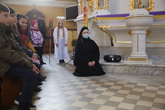 siostry Wiktorii zaprezentowały inscenizację na temat sakramentu pokuty.