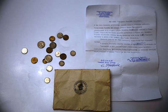 czasu” na którą składają się zabytkowe monety i ciekawe pismo skierowane do
