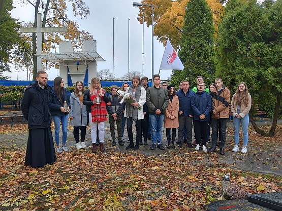 księdza Jerzego Popiełuszki delegacja uczniów i nauczycieli Zespołu Szkół