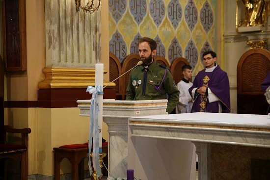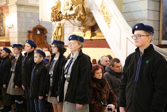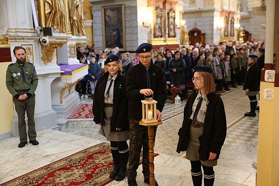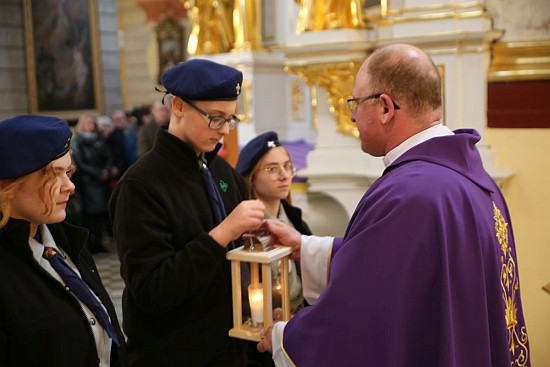 harcerskiej uroczyście wnieśli światełko pokoju do naszej świątyni.