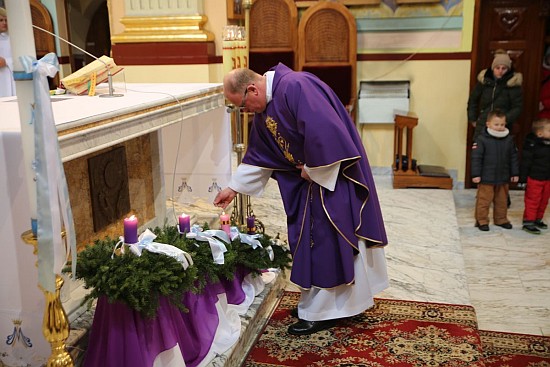 światełka ks. Tomasz Lis, proboszcz odpalił świece na parafialnym wieńcu