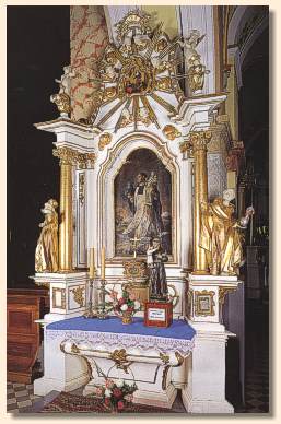 otoczony promieniami i główkami aniołów. Na ołtarzu ustawiona jest