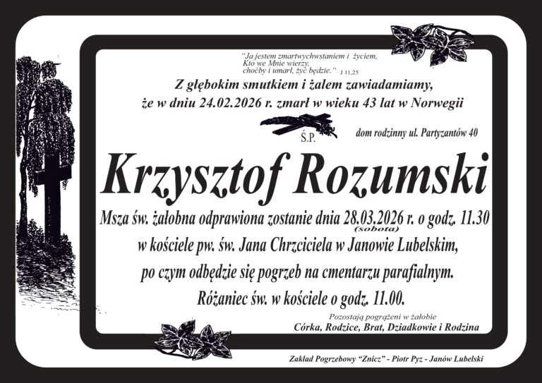 W dniu 27 marca 2026 r. z Sanktuarium w Janowie Lubelskim wyruszy po raz dziewiąty Ekstremalna Droga Krzyżowa. Rozpocznie się ona w piątek, 27 marca 2026 r. Mszą Św. o godz. 20.00 w kościele pw. św. Jana Chrzciciela (Sanktuarium Maryjne).…