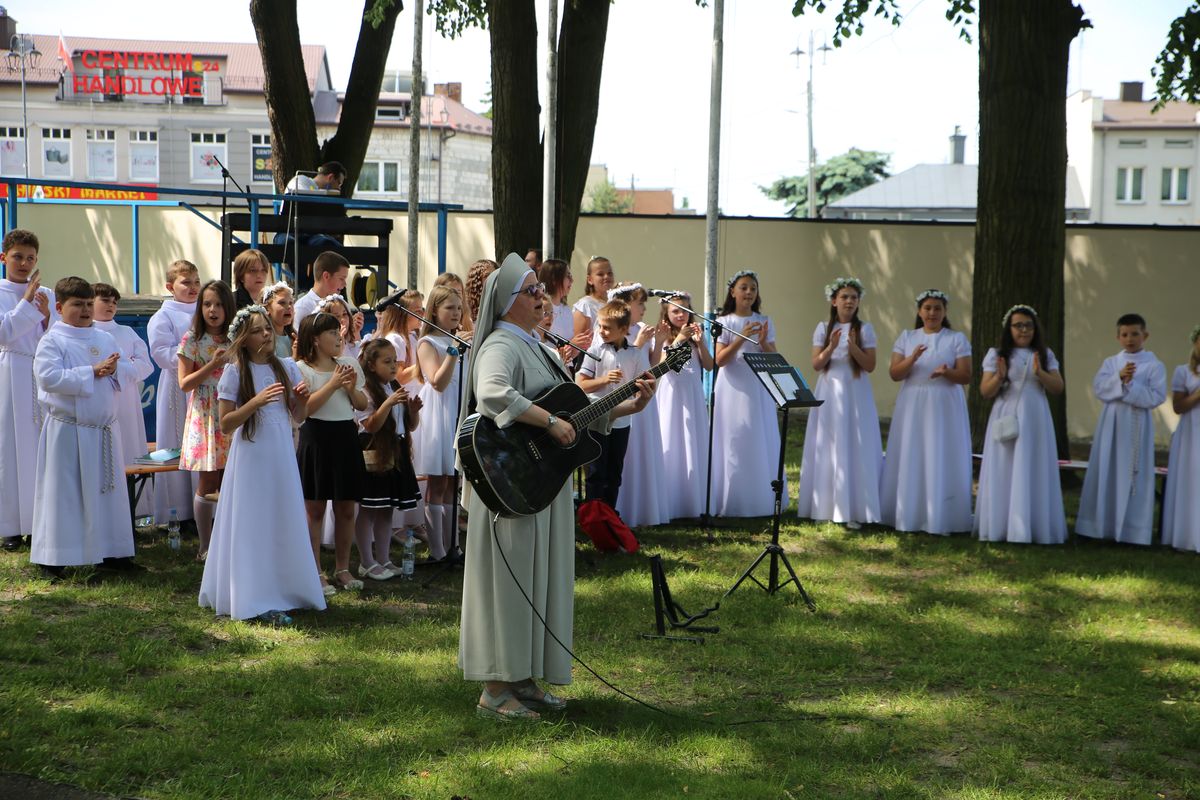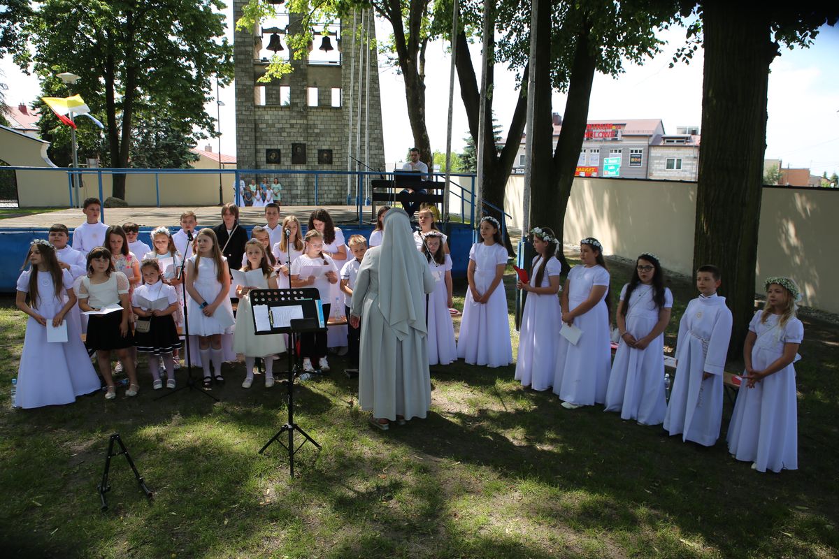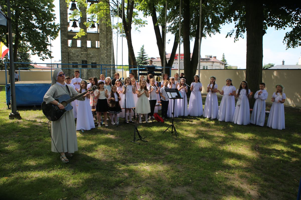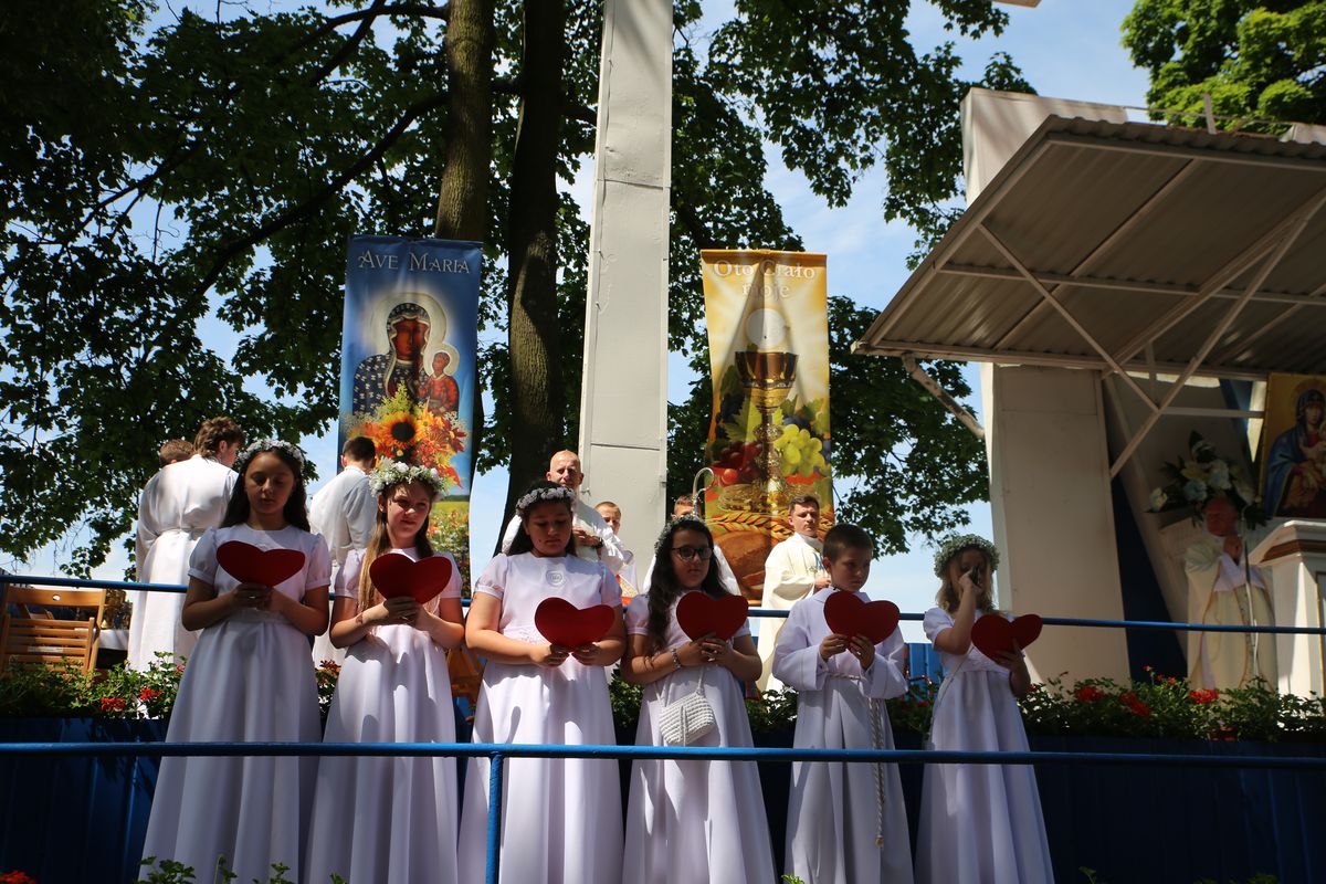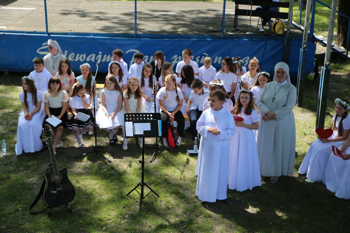 Biskup Edward Frankowski, rozpoczynając Eucharystię, podziękował wszystkim kapłanom, siostrom zakonnym, katechetom za opiekę nad dziećmi oraz wyraził radość z obecności tak wielu dzieci, rodziców i opiekunów. Podkreślił, że poprzez dar Komunii świętej jeszcze bardziej stajemy się umiłowanymi dziećmi Pana Boga. Homilię wygłosił ks. Wojciech Zając. Po Mszy św. był czas na słodki poczęstunek, wspólną zabawę i zwiedzanie sanktuarium.