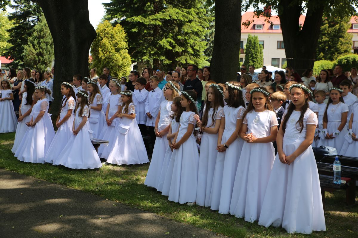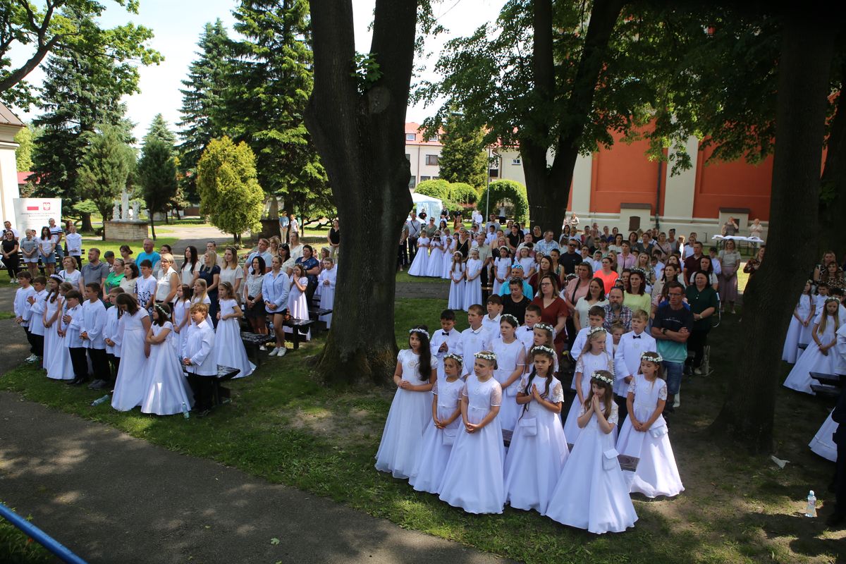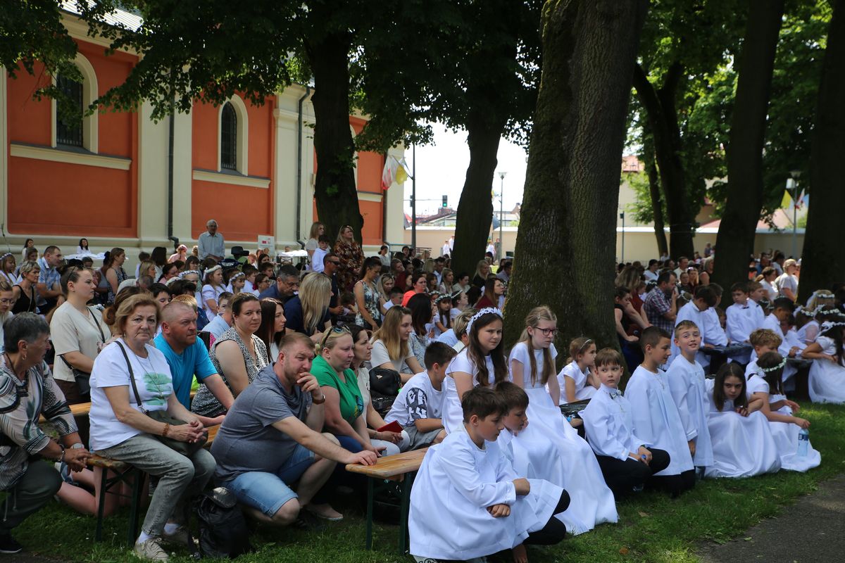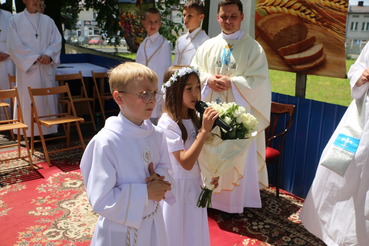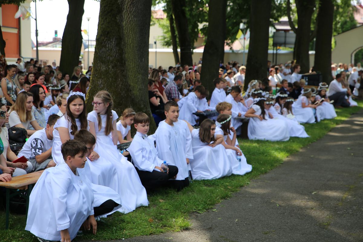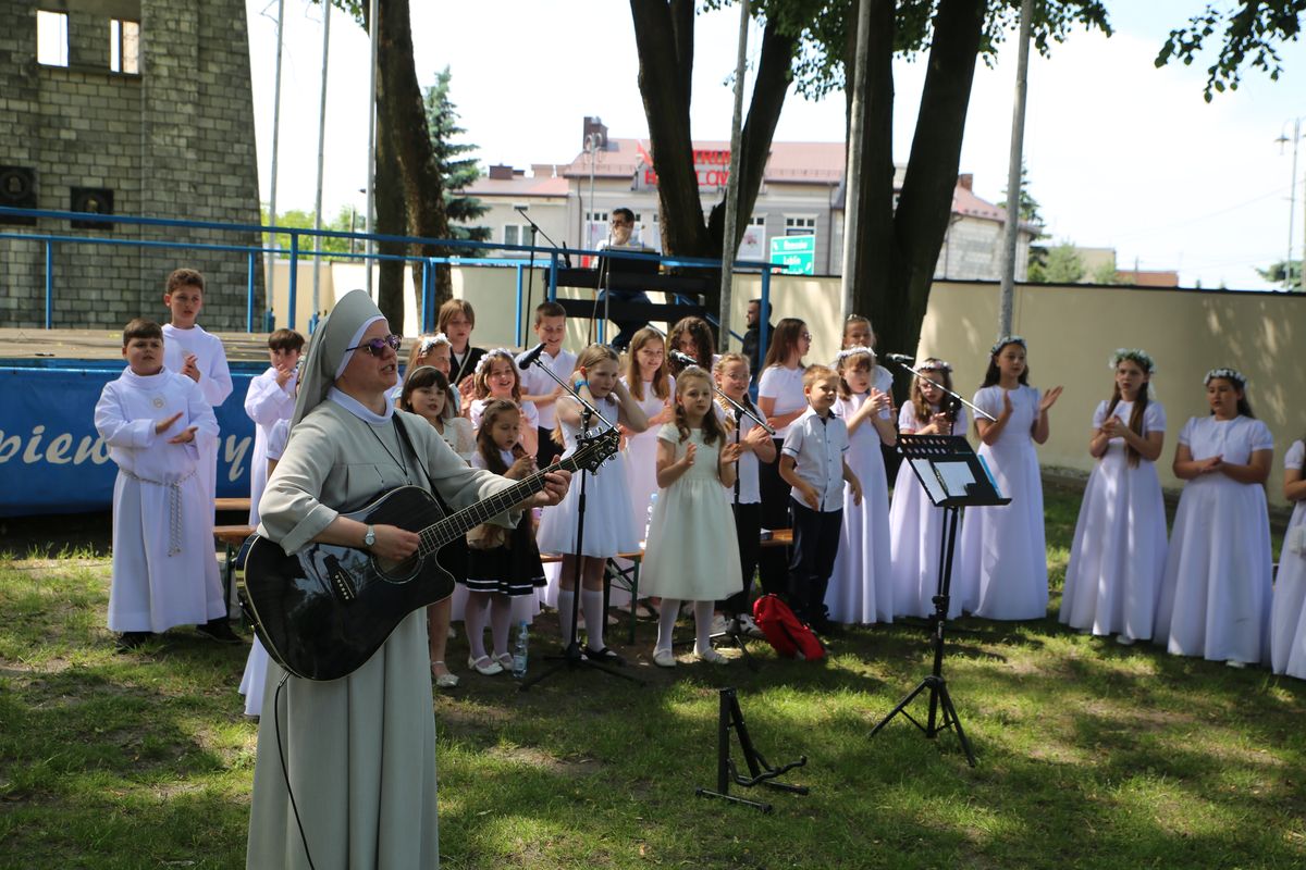 Biskup Edward Frankowski, rozpoczynając Eucharystię, podziękował wszystkim kapłanom, siostrom zakonnym, katechetom za opiekę nad dziećmi oraz wyraził radość z obecności tak wielu dzieci, rodziców i opiekunów. Podkreślił, że poprzez dar Komunii świętej jeszcze bardziej stajemy się umiłowanymi dziećmi Pana Boga. Homilię wygłosił ks. Wojciech Zając. Po Mszy św. był czas na słodki poczęstunek, wspólną zabawę i zwiedzanie sanktuarium.