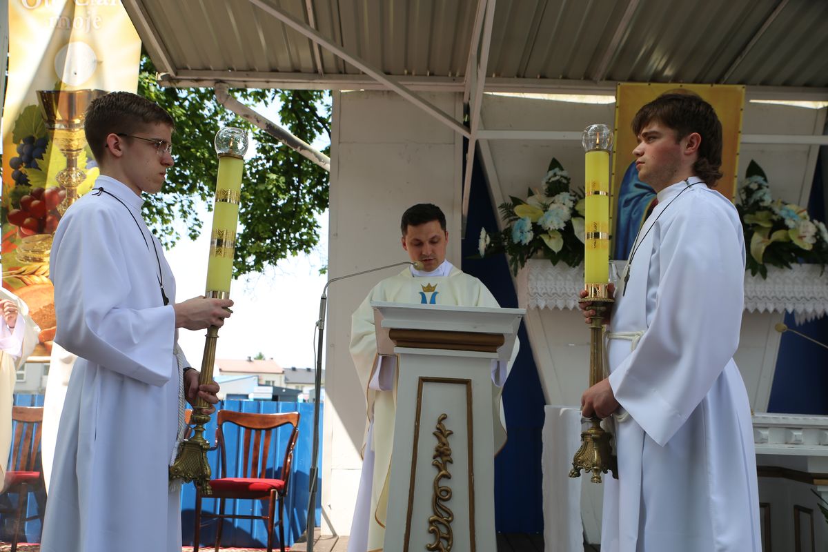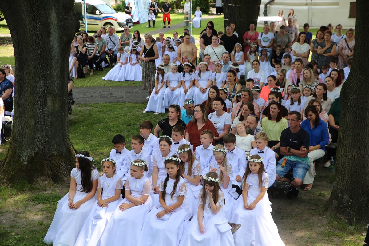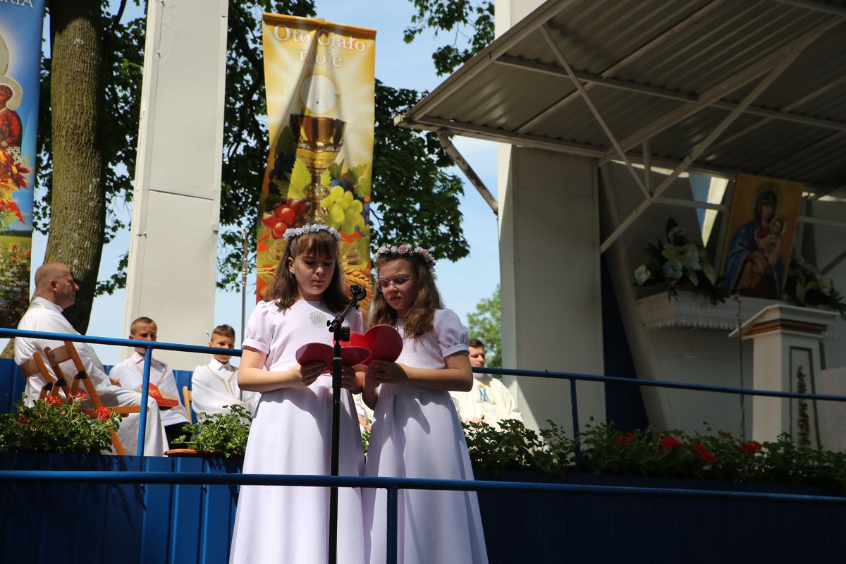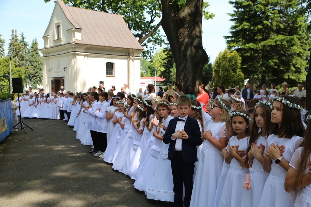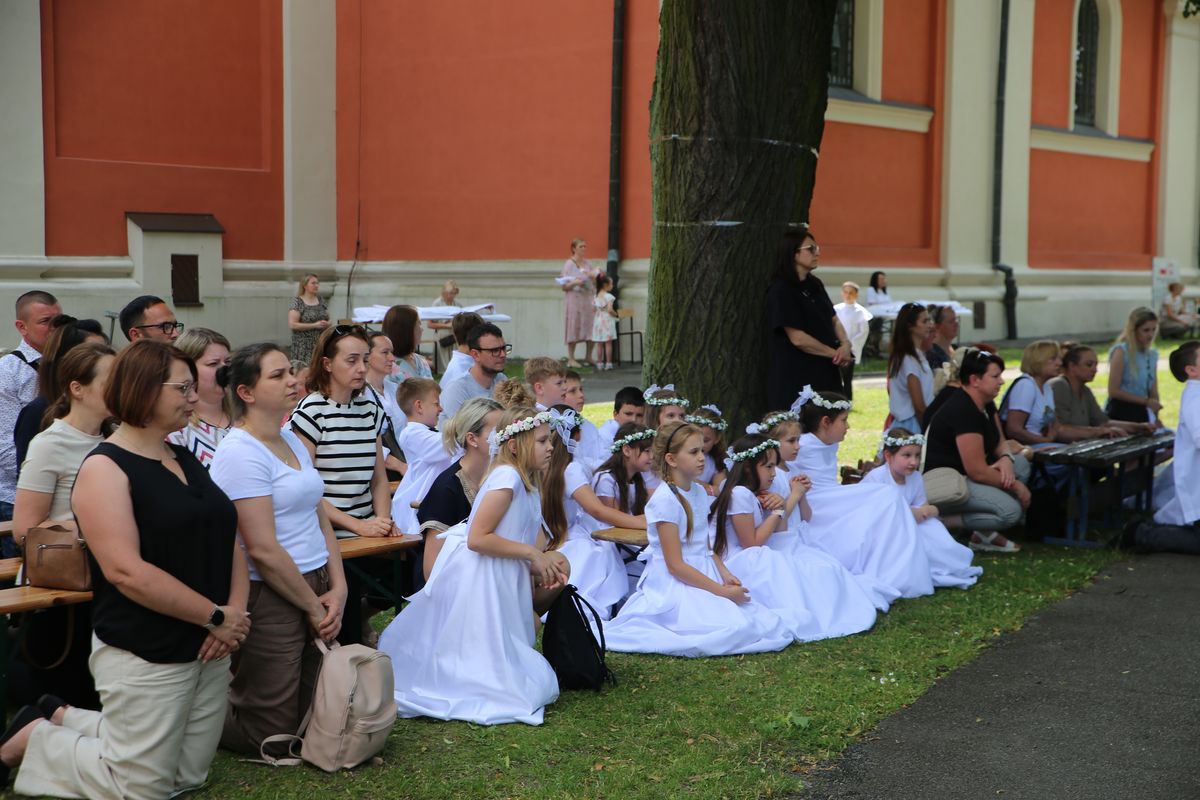 Biskup Edward Frankowski, rozpoczynając Eucharystię, podziękował wszystkim kapłanom, siostrom zakonnym, katechetom za opiekę nad dziećmi oraz wyraził radość z obecności tak wielu dzieci, rodziców i opiekunów. Podkreślił, że poprzez dar Komunii świętej jeszcze bardziej stajemy się umiłowanymi dziećmi Pana Boga. Homilię wygłosił ks. Wojciech Zając. Po Mszy św. był czas na słodki poczęstunek, wspólną zabawę i zwiedzanie sanktuarium.