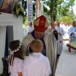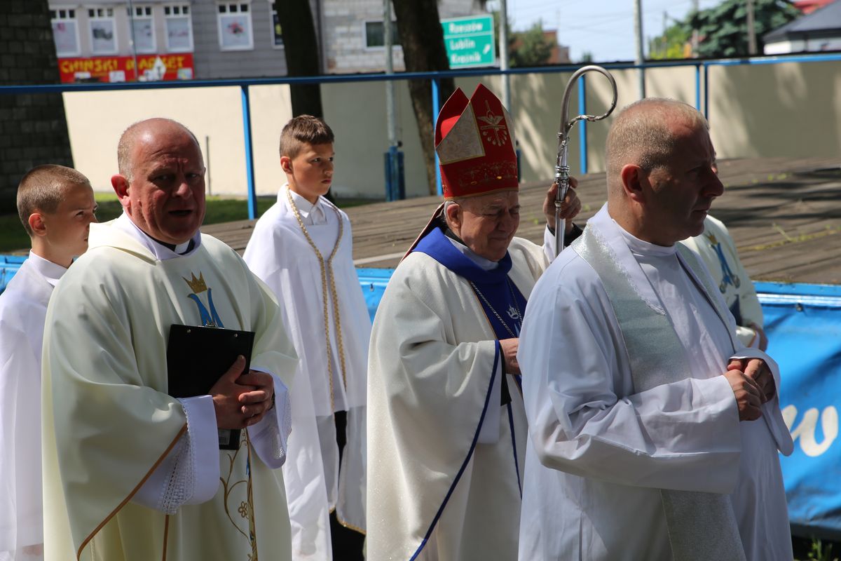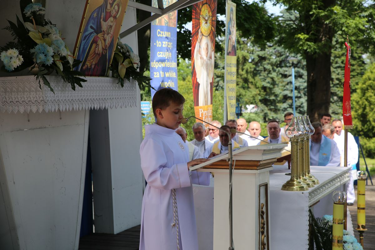 Diecezjalna pielgrzymka dzieci komunijnych rozpoczęła się od nabożeństwa czerwcowego. Po odśpiewaniu Litanii do Serca Pana Jezusa uczestnicy spotkania zostali pobłogosławieni Najświętszym Sakramentem. Następnie dzieci uczestniczyły we wspólnej Mszy św., której przewodniczył biskup pomocniczy senior Edward Frankowski. Kustosz sanktuarium ks. Tomasz Lis, witając zebranych, podkreślił, że dzieci przybywają do janowskiego sanktuarium jak do domu mamy.