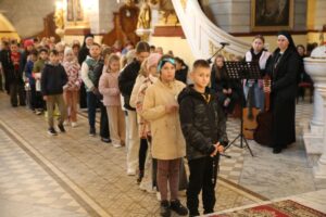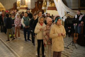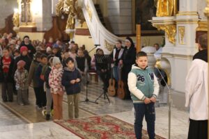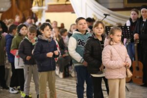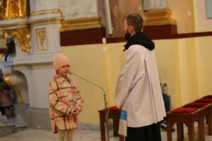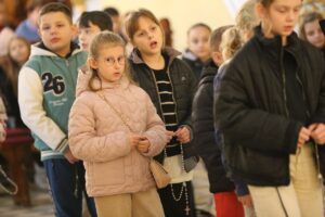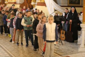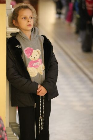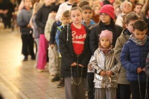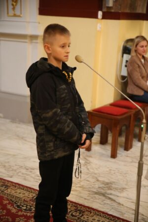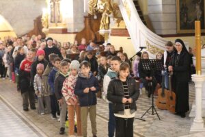 Od poniedziałku do piątku o godzinie 16.00 dzieci wspólnie odmawiają różaniec polecając różne intencje. – Na dziecięcy różaniec dzieci przychodzą wraz z opiekunami, rodzicami bądź dziatkami. Każdego dnia podejmują konkretną intencję różańcową. Cieszy nas to jak wiele dzieci i młodych przychodzi na tę modlitwę – podkreślił ks. Tomasz Lis.