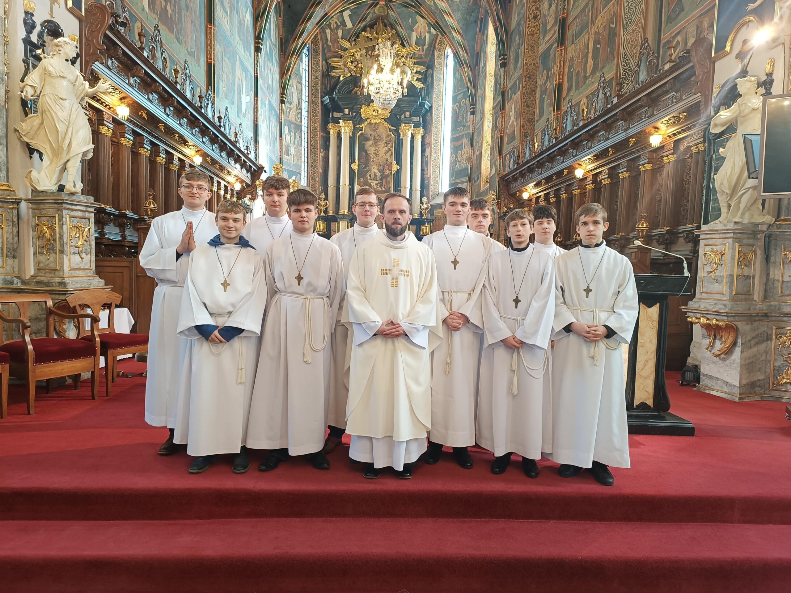 ● Kandydaci – uczniowie III klasy szkoły podstawowej, przygotowujących się do przyjęcia I Komunii Świętej i starsi. Formacja trwa rok i kończy się przyjęciem do grona ministrantów. Podczas spotkań kandydaci kształtują cechy ministranta (m.in. wdzięczność, uczynność, pracowitość, posłuszeństwo, koleżeńskość, okazywanie szacunku, systematyczność), zapoznają się ze słowniczkiem liturgicznym, podstawami służenia przy ołtarzu.