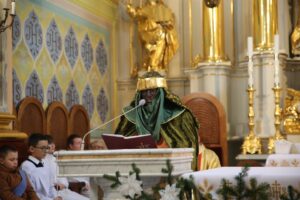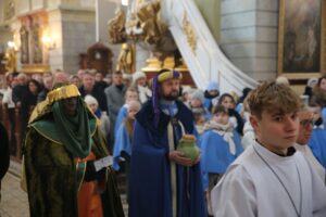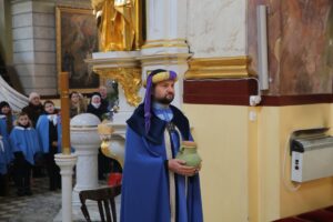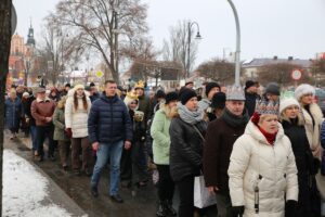 Orszak rozpoczęły Msze św. sprawowane w obu parafiach, po czym uformowane dwie kolumny orszaku, na czele których podążali królowie, przy śpiewie kolęd, udały się do stajenki betlejemskiej. – To już tradycja, że całą rodziną bierzemy udział w orszaku i wraz z Królami idziemy pokłonić się Dzieciątku Jezus. Wspólne kolędowanie przy szopce i spotkanie mieszkańców całego miasta jest też świadectwem naszej wiary. Miło jest widzieć tak wiele osób, które chcą pokazać piękno naszych polskich i katolickich tradycji – podkreślał pan Jarosław, który wraz z rodziną od lat bierze udział w orszaku.