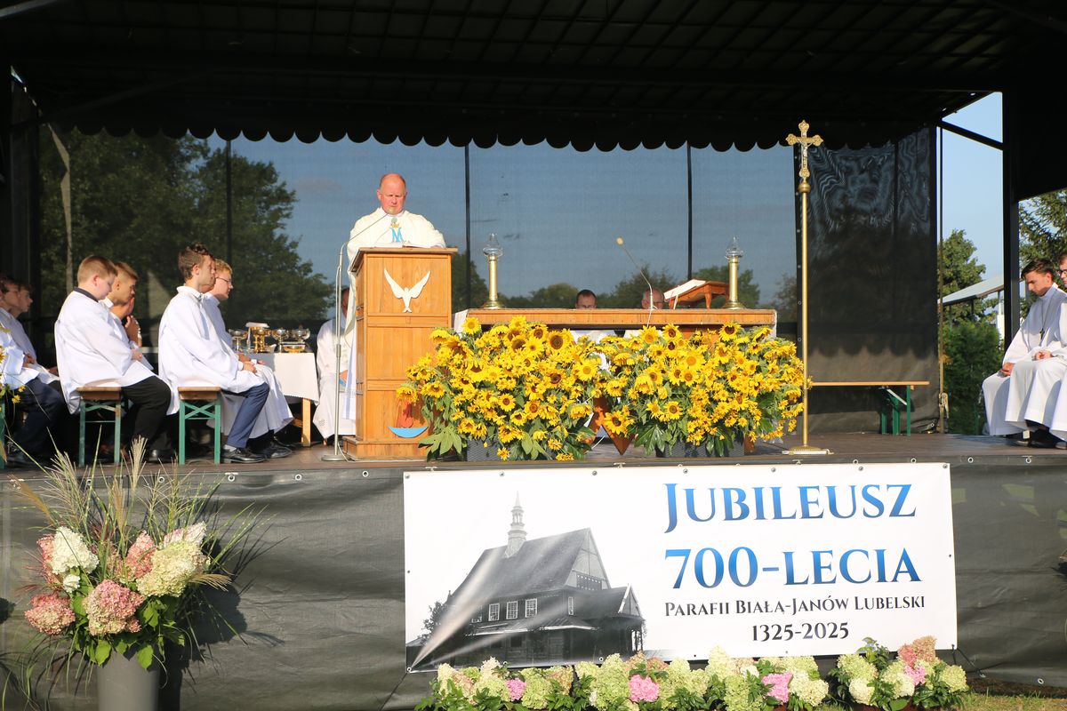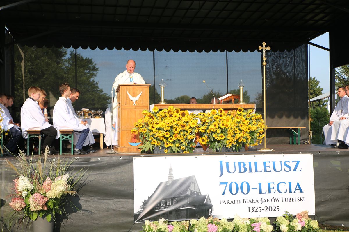 We Mszy św. wzięło udział tłumy parafian i mieszkańców miejscowości Biała i Janów Lubelski. Eucharystii przewodniczył ks. Tomasz Lis, a koncelebrowali ks. inf. Edmund Markiewicz – proboszcz senior, ks. Waldemar Farion, proboszcz parafii św. Jadwigi w Janowie Lubelskim, ks. Krzysztof Lipski, kapelan szpitala. We wspólnej modlitwie wzięli udział: Starosta Janowski, Burmistrz Miasta oraz mieszkańcy i parafianie. Podczas homilii ks. Tomasz Lis wskazał, że świadomość własnej historii pomaga kształtować tożsamość i wizję przyszłości. – Musimy być dziś wdzięczni pokoleniom naszych przodków, którzy własnym życiem pisali „Księgę wiary” tej parafii i wspólnoty. Będąc ich potomkami musimy odpowiedzialnie przejąć depozyt tej wiary, umocnić go i przekazać nowemu pokoleniu. To nasze dziejowe zadanie – wskazał kaznodzieja.