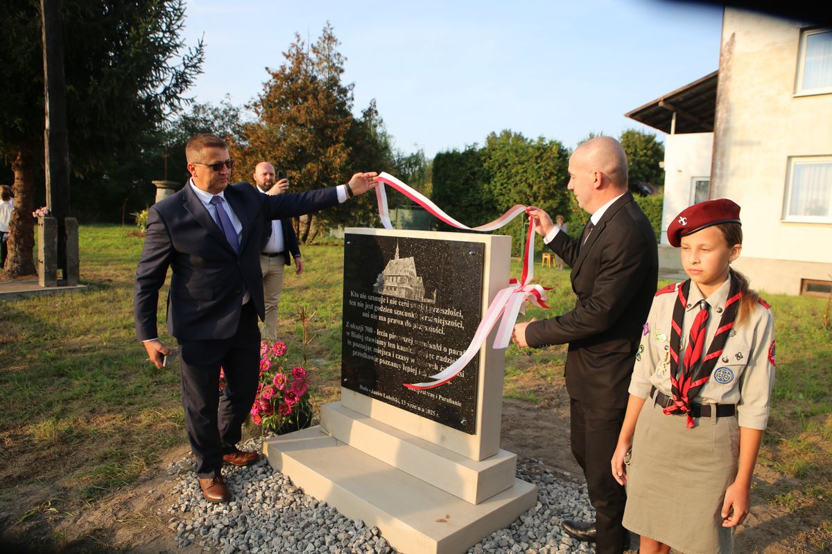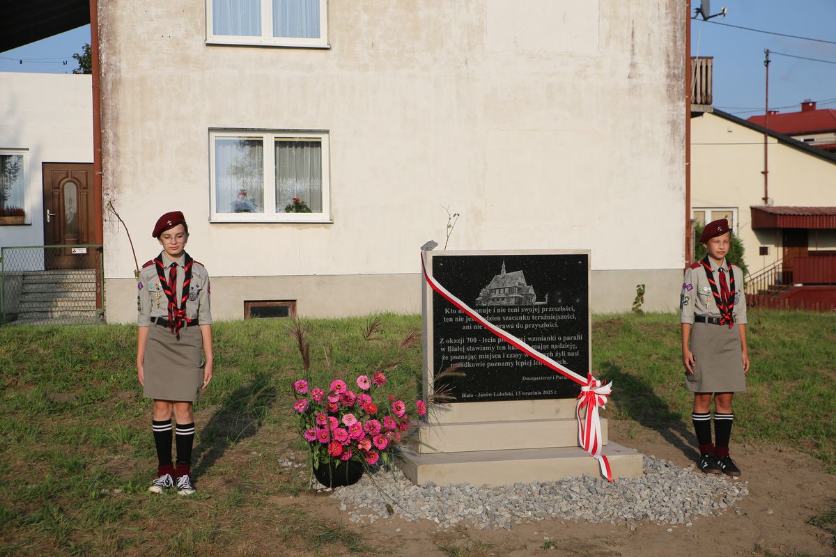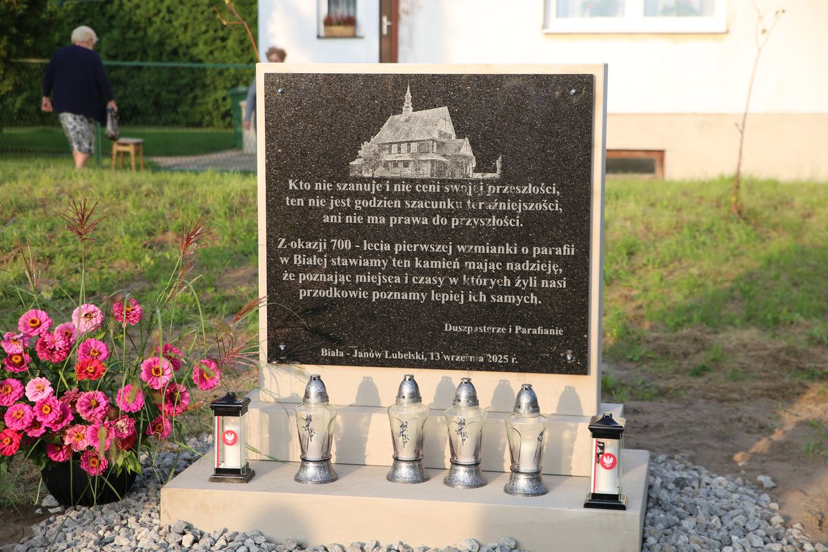„Kto nie szanuje i nie ceni swojej przeszłości, ten nie jest godzien szacunku teraźniejszości, ani nie ma prawa do przyszłości” – taka sentencja została uwieczniona na symbolicznej tablicy, którą parafianie wraz z duszpasterzami umieścili na placu gdzie przed 40-laty odbyła się koronacja obrazu Matki Bożej Janowskiej. Poświęcenie i odsłonięcie tablicy odbyło się na zakończenie Mszy św., która była zwieńczeniem obchodów 700-lecia parafii. – W Liber beneficiorum Jana Długosza znajduje się wykaz parafii z których pobierano dziesięciny i świętopietrze na terenie Królestwa Polskiego. Właśnie w tym spisie znajduje się parafia Biała. I choć można śmiało przypuszczać, ze parafia powstała dużo wcześniej to jednak historycznie jest to pierwsze wzmiankowanie o naszej parafii. Stąd w tym roku obchodziliśmy 700 – lecie naszej parafii. Msza św. w miejscu koronacji obrazu Matki Bożej w 1985 r. była swego rodzaju podsumowaniem wielu wydarzeń parafialnego jubileuszu – podkreślił ks. Tomasz Lis, proboszcz parafii.
