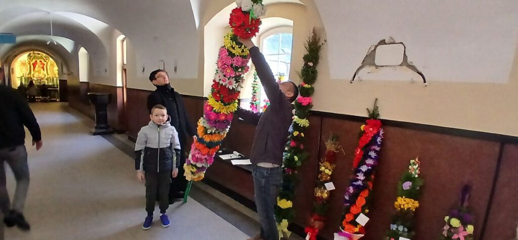 Do wykonania palm najczęściej używa się żywych i suszonych roślin, papierowych kwiatów i innych ręcznie wykonanych ozdób. W Niedzielę Palmową rozstrzygnięto także konkurs parafialny pt. „Palma Wielkanocna”. – Konkurs odbywał się w jednej kategorii „Palma rodzinna”. Do konkursu zgłoszono 21 palmy, które oceniło powołane Jury. Trzeba podkreślić, że w regulaminie konkursu podkreślaliśmy, że palma musi być wykonana z elementów naturalnych: roślinnych i papierowych i musi nawiązywać do tradycyjnej palmy wielkanocnej.
