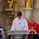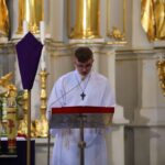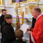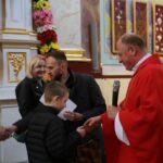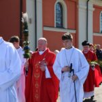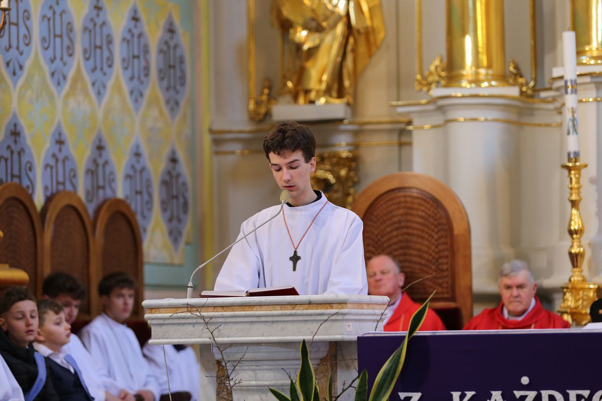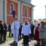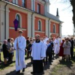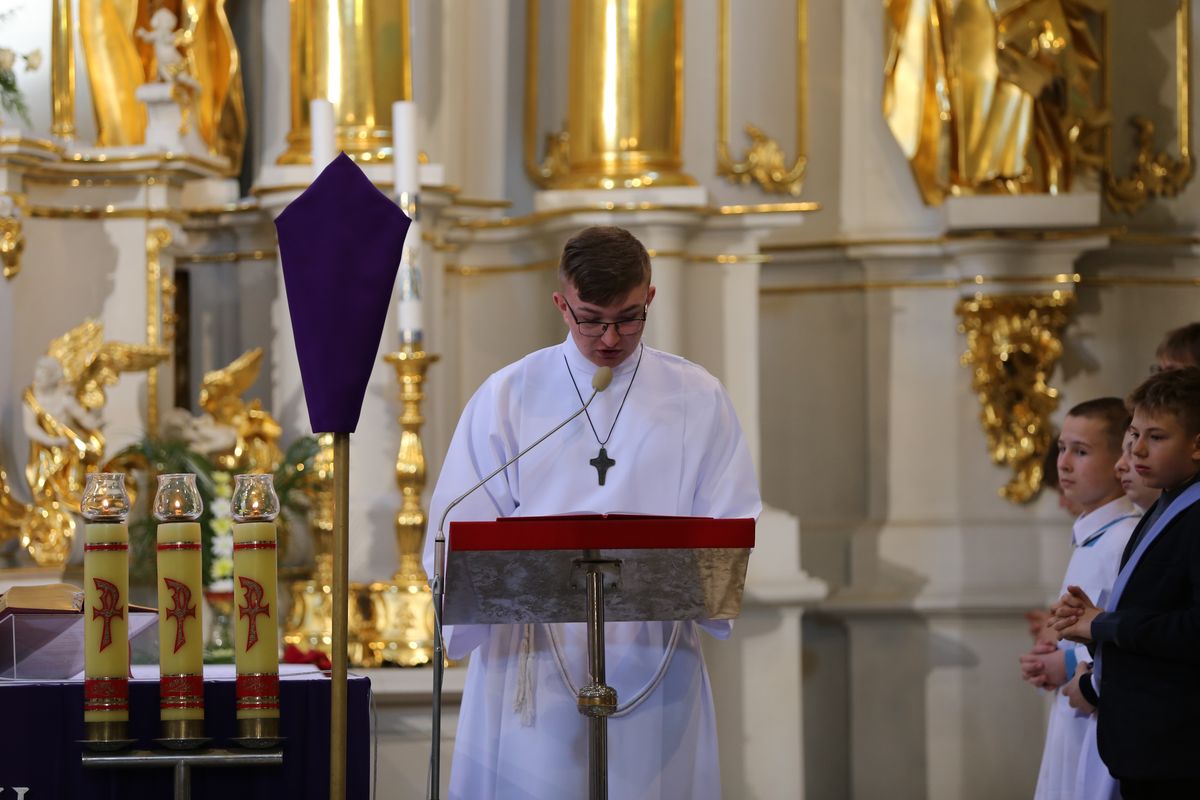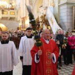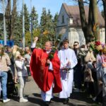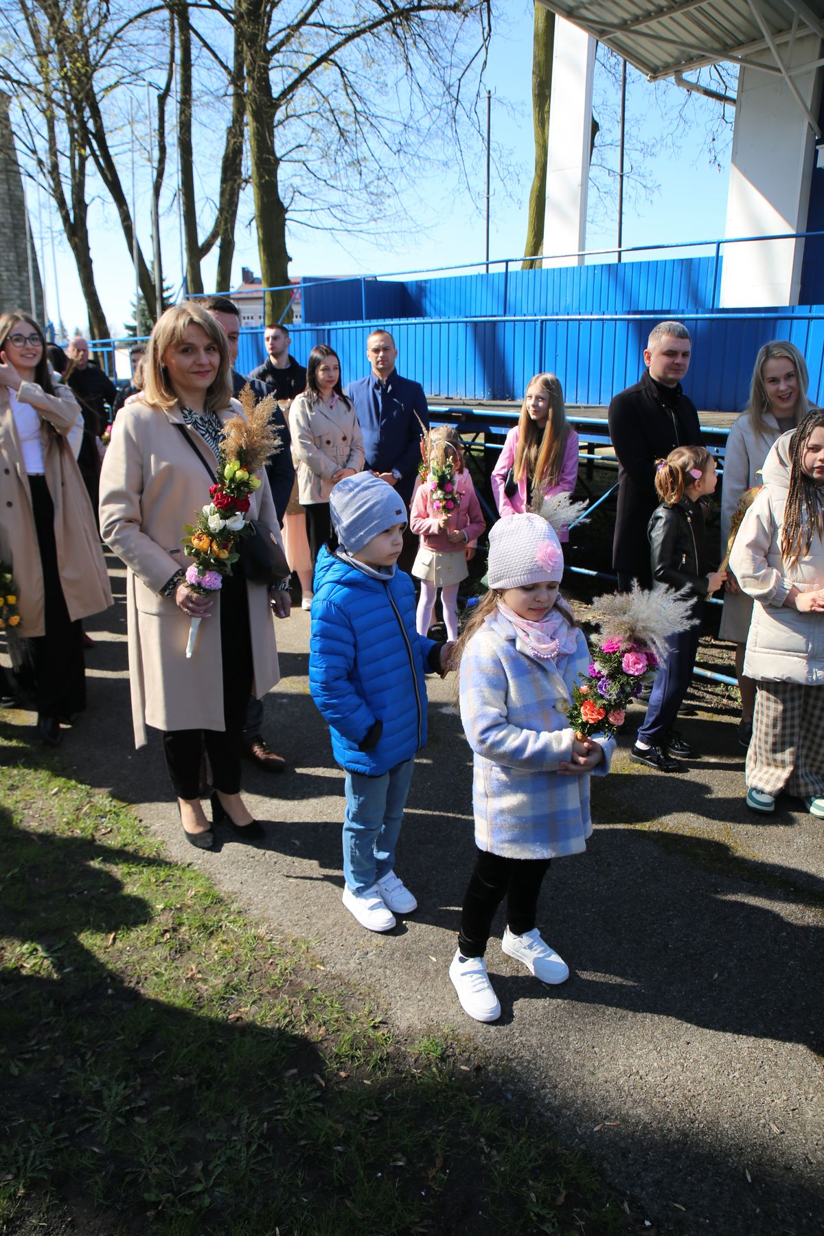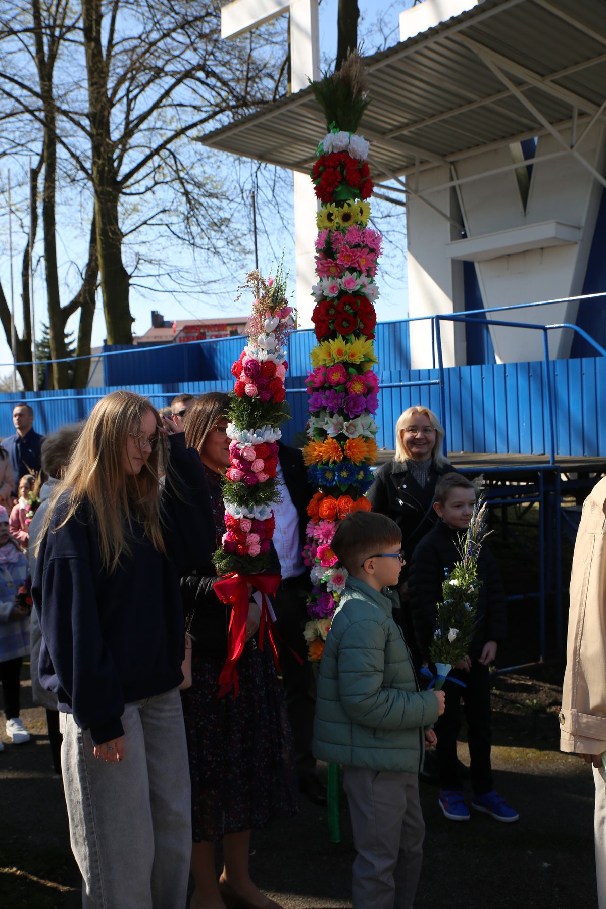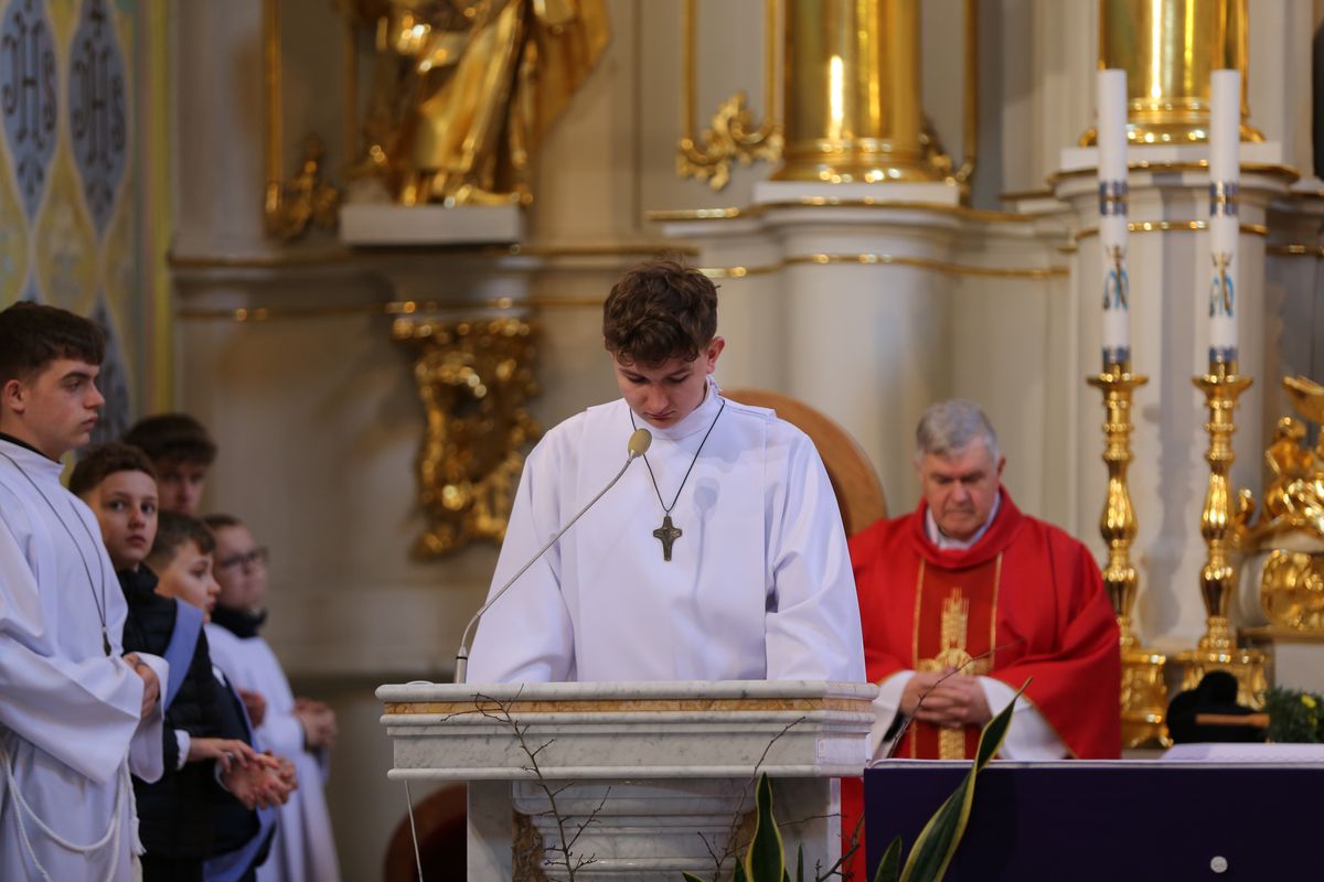 Podczas Mszy św. o godz. 10.30 odbyła się uroczysta procesja z palmami. Na wspólnej modlitwie zgromadzili się liczni parafianie i mieszkańcy miasta. Mszy św. przewodniczył ks. Tomasz Lis, proboszcz, który podziękował za udział we Mszy św. i procesji oraz uczestnikom konkursu za wykonane palmy. W procesji wzięli udział osoby, które wzięły udział w konkursie prezentując własnoręcznie wykonane palmy. Pośród uczestników wspólnej modlitwy nie zabrakło całych rodzin z dziećmi, które dumnie prezentowały palmy. Jak podkreślali parafialnie w wielu domach palmy nadal wykonuje się własnoręcznie, a poświęcone gałązki umieszcza się w ważnych miejscach domu, gdyż jak przekazują rodzice poświęcona palma ma chronić przed złem i przypominać o tym by życiem wychwalać Boga za dzieło odkupienia.