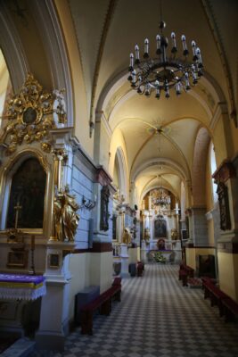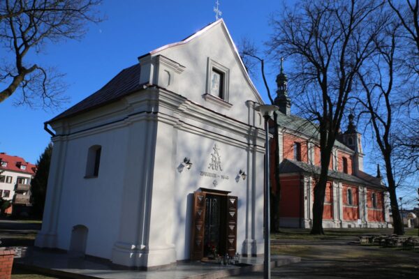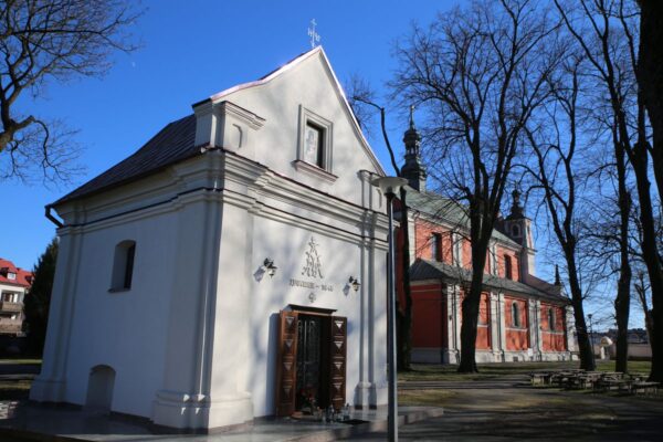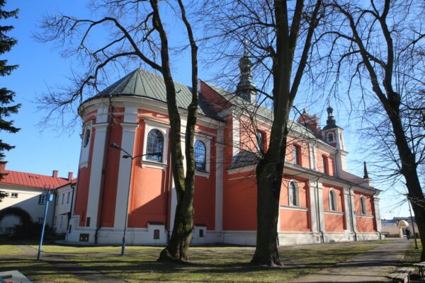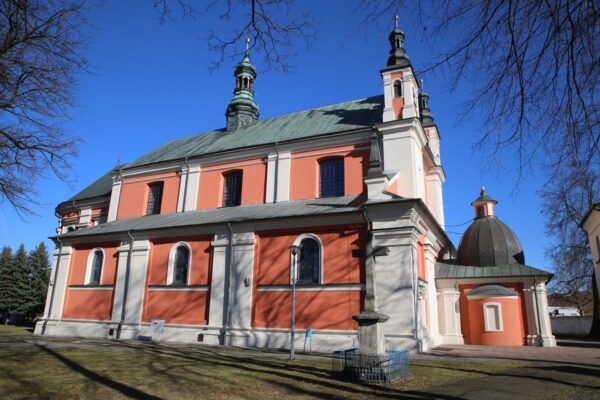 Podominikański kościół parafialny pw. św. Jana Chrzciciela wzniesiony został w latach 1694-1720 przypuszczalnie według projektu Jana Michała Linka. Prezbiterium zbudowano w latach 1694-1700, nawę zaś w latach 1715-1720. Świątynię uroczyście poświęcił 21 X 1742 r. bp M. Kunicki z Krakowa. Gruntowny remont kościoła przeprowadzono w latach 1768-1772, wraz ze wzniesieniem sklepienia przez budowniczego Walerego Kaczorowskiego. Obecny wygląd nadała kościołowi przebudowa z lat 1910-1913, którą przeprowadził ks. Michał Zawisza. Prace restauracyjne kościoła prowadzili również księżą Franciszek Trochonowicz (lata 60-te XX w.) oraz Edmund Markiewicz (lata 80-te i 90-te XX w.). Świątynia jest murowana, barokowa, typu bazylikowego, z dwoma symetrycznymi wieżyczkami w fasadzie i barokowym szczytem między nimi oraz sygnaturką na środku dachu. Do fasady dostawiona jest kruchta przykryta dachem kopułowym z latarnią. Wnętrze jest trójnawowe, przekryte sklepieniem krzyżowym wspartym na łukach sklepiennych. Całość ściany prezbiterium wypełnia ołtarz główny, wykonany z drewna, polichromowany, z obrazem w zwieńczeniu przedstawiającym objawienie maryjne, oraz z cudownym obrazem MB w typie Salus Populi Romani z poł. XVII w. wykonanym w warsztacie dominikanów krakowskich. Wyposażenie stanowią ponadto XVIII-wieczne drewniane ołtarze rokokowe, przyfilarowe, rokokowa ambona, organy z renesansowym prospektem oraz marmurowa kropielnica z II poł. XVIII w. Do kościoła przylegają dawne pomieszczenia klasztorne, przeznaczone na sale spotkań i bibliotekę, oraz muzeum parafialne z ekspozycją historycznych szat, ksiąg i naczyń liturgicznych. Główne wejście do kościoła prowadzi przez XVIII-wieczną dzwonnicę na planie kwadratu, wbudowaną w murowane ogrodzenie, otaczające zespół kościoła. Na terenie kościelnym znajduje się kaplica pw. Objawienia NMP z II poł. XVIII w.