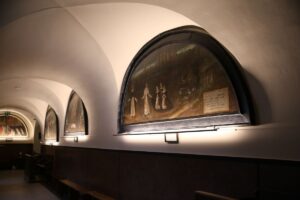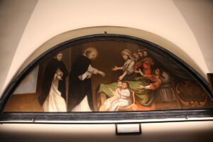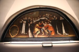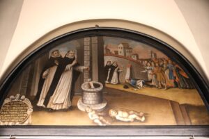 Po blisko dwu latach prac konserwatorskich i restauratorskich na poklasztorne krużganki powrócił cykl obrazów przedstawiających żywot świętego Dominika.