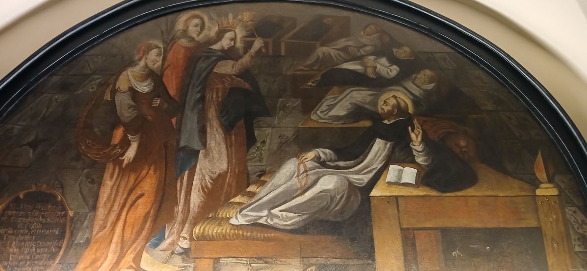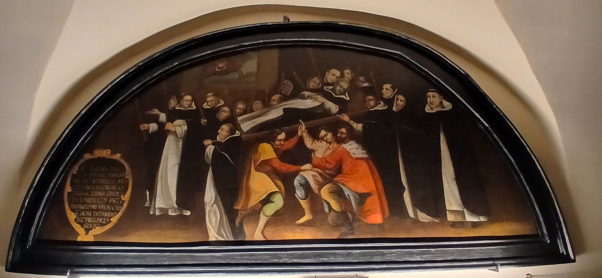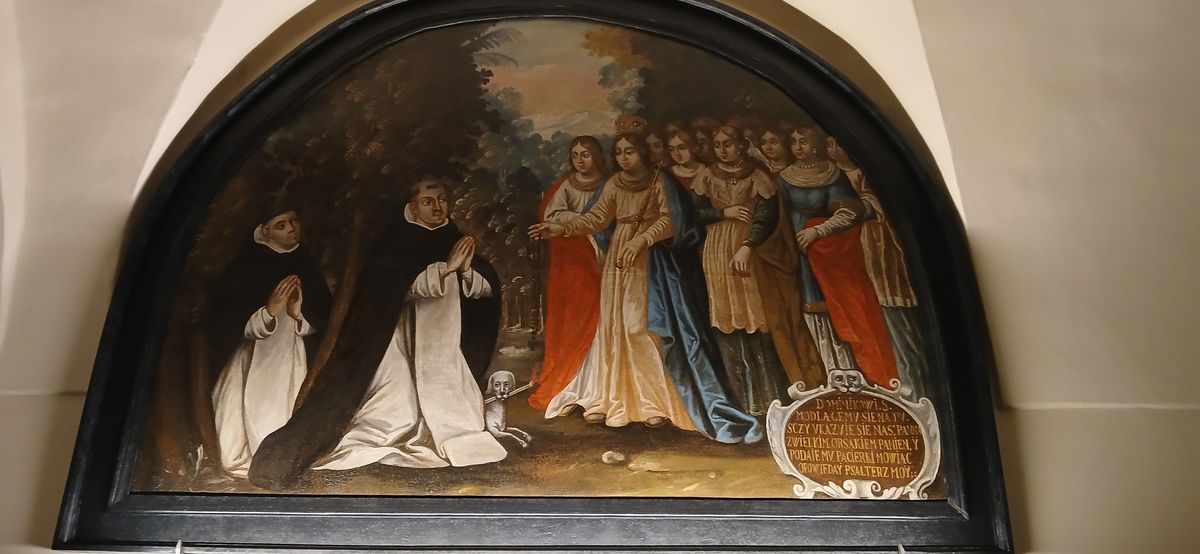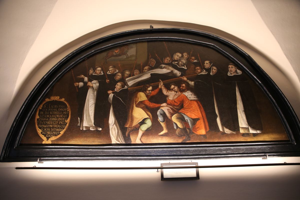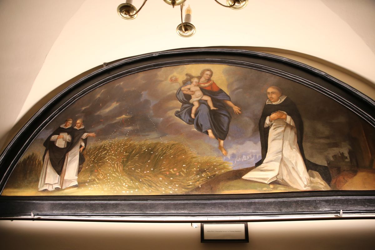 Po blisko dwu latach prac konserwatorskich i restauratorskich na poklasztorne krużganki powrócił cykl obrazów przedstawiających żywot świętego Dominika.