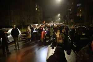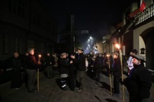 Krzyż pomiędzy kolejnymi stacjami ponieśli wierni uczestniczący w patriotycznej drodze krzyżowej.