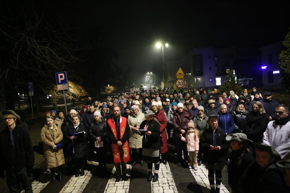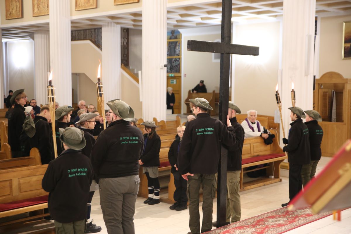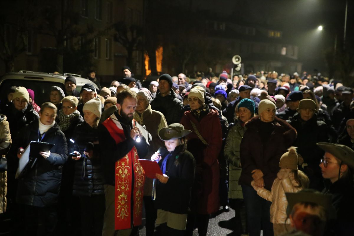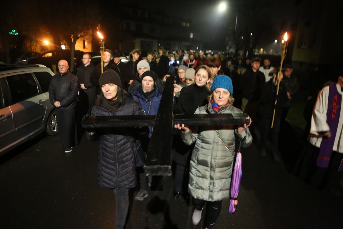 Stacje drogi krzyżowej usytuowane były wzdłuż ulic miasta i prowadziły z kościoła św. Jana Chrzciciela do kościoła św. Jadwigi królowej. Rozważania przygotowali i poprowadzili druhowie i druhny 2 Wielopoziomowej Drużyny Harcerskiej Warta pod opieką ks. Tomasza Kopcia.
