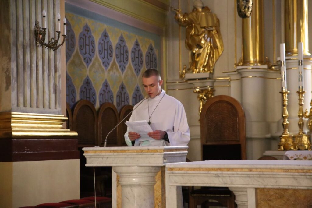 Poświęcenie ognia, wody chrzcielnej i Boże Słowo i Msza św. o tajemnicy zmartwychwstania – to elementy składające się na liturgię Wielkiej Soboty, bogatej w symbole i znaczenia. Liturgii przewodniczył ks. Damian Surowiec, wikariusz parafii wraz ze wszystkimi kapłanami posługującymi w parafii. Wspólną modlitwę chrześcijańskiego czuwania przed zmartwychwstaniem Chrystusa, rozpoczął obrzęd poświęcenia ognia i Paschału. Przy jego świetle i zapalonych przez wiernych świec w świątyni odśpiewano Orędzie Paschalne, wyjaśniające symbolikę światła, którym jest Chrystus powstający z mroku śmierci do życia. Następnie wierni wysłuchali rozbudowanej do kilku czytań Liturgii Słowa. Homilię wygłosił ks. Tomasz Kopeć wskazując na znaczenie liturgii prowadzącej do zrozumienia tajemnicy zmartwychwstania Chrystusa.