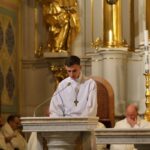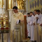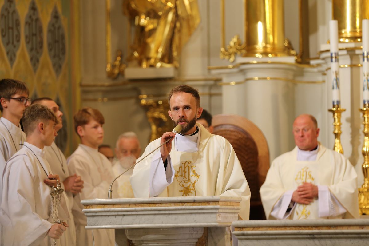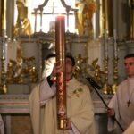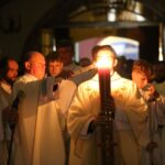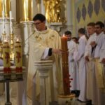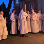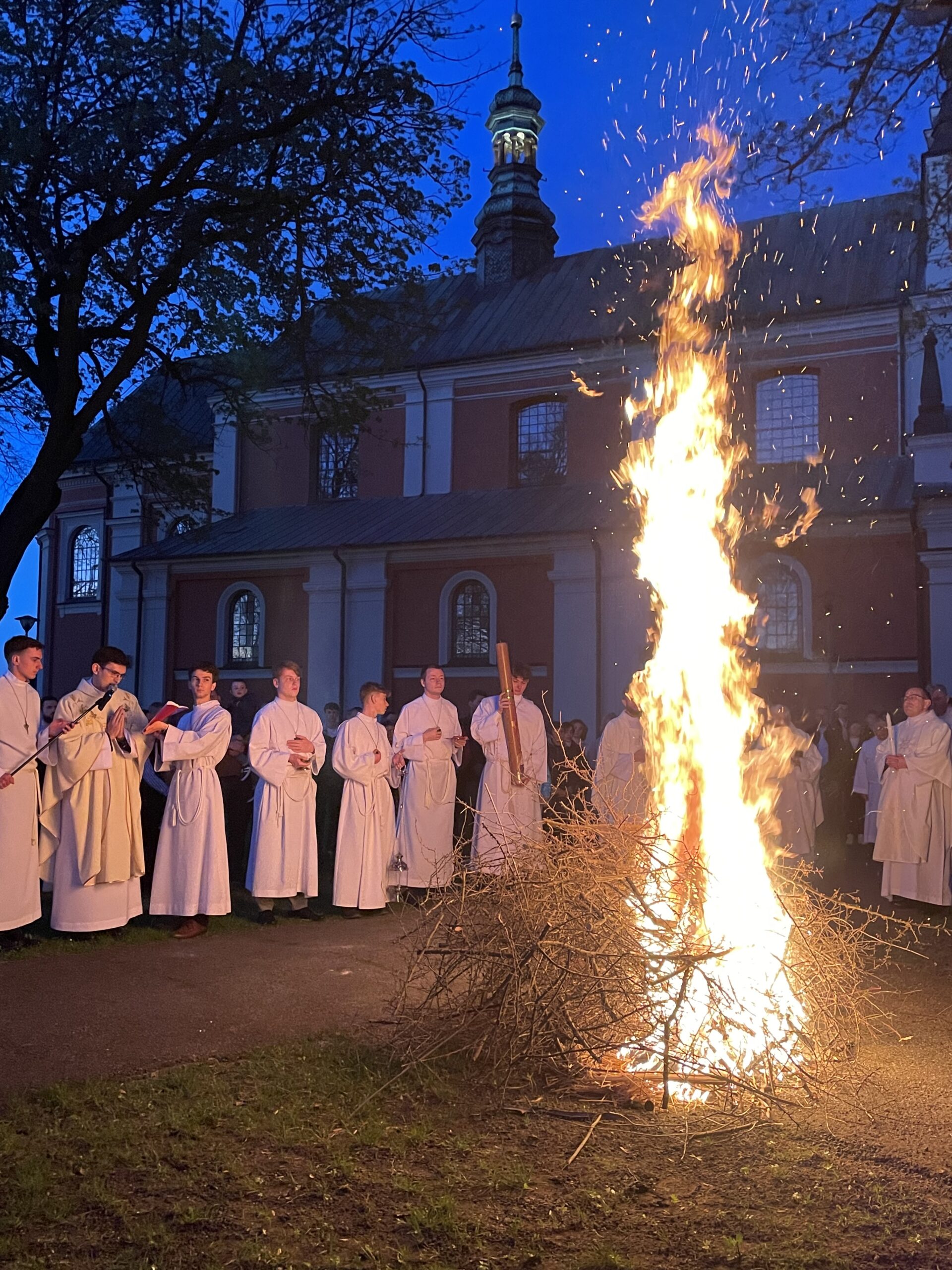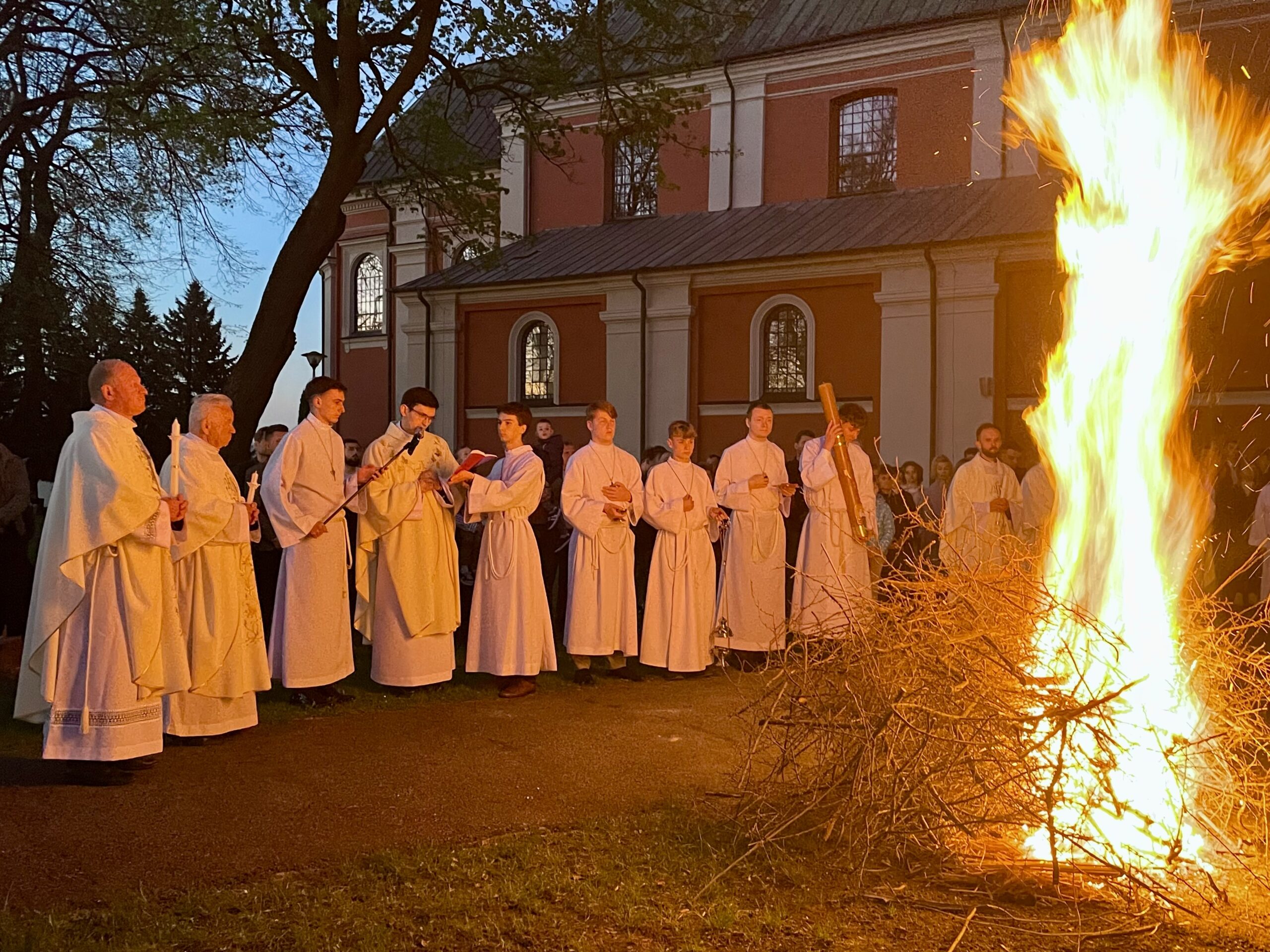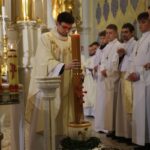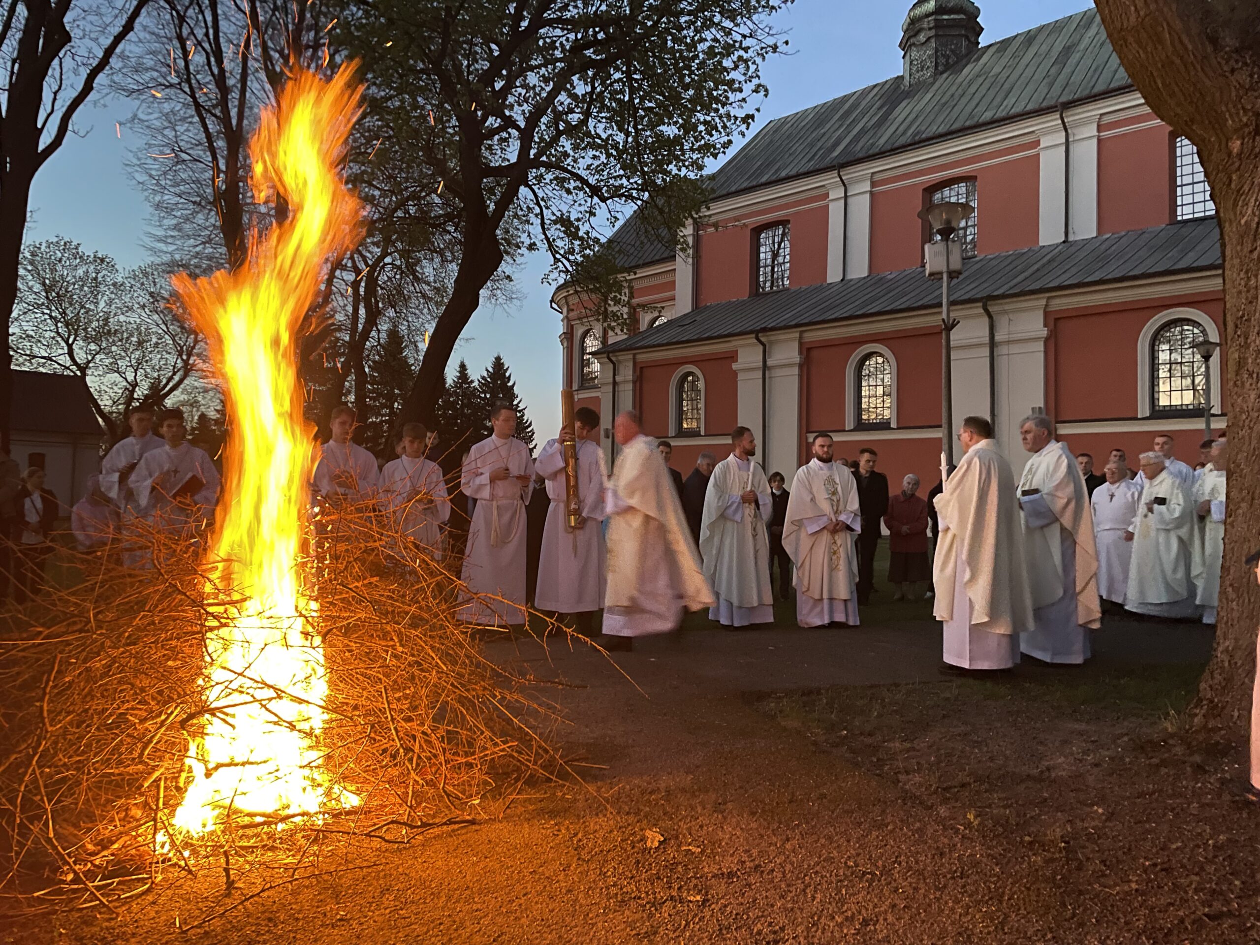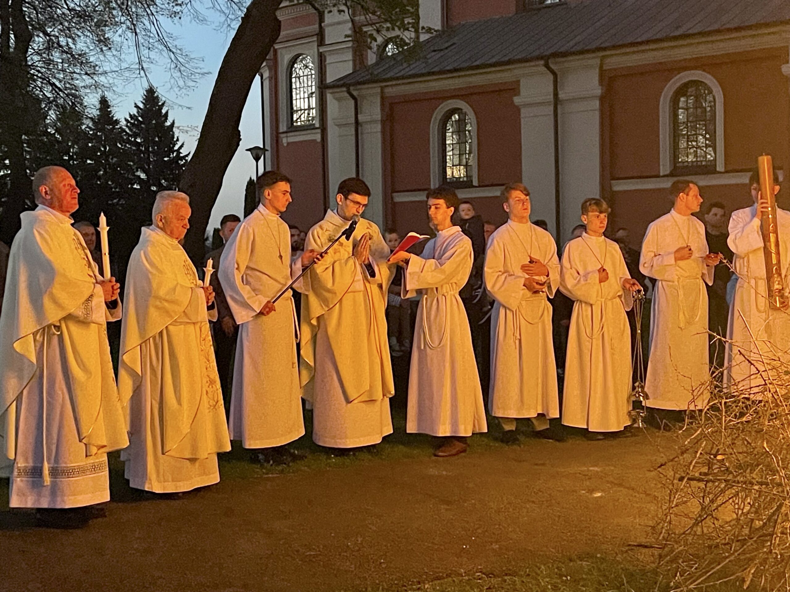 Poświęcenie ognia, wody chrzcielnej i Boże Słowo i Msza św. o tajemnicy zmartwychwstania – to elementy składające się na liturgię Wielkiej Soboty, bogatej w symbole i znaczenia. Liturgii przewodniczył ks. Damian Surowiec, wikariusz parafii wraz ze wszystkimi kapłanami posługującymi w parafii. Wspólną modlitwę chrześcijańskiego czuwania przed zmartwychwstaniem Chrystusa, rozpoczął obrzęd poświęcenia ognia i Paschału. Przy jego świetle i zapalonych przez wiernych świec w świątyni odśpiewano Orędzie Paschalne, wyjaśniające symbolikę światła, którym jest Chrystus powstający z mroku śmierci do życia. Następnie wierni wysłuchali rozbudowanej do kilku czytań Liturgii Słowa. Homilię wygłosił ks. Tomasz Kopeć wskazując na znaczenie liturgii prowadzącej do zrozumienia tajemnicy zmartwychwstania Chrystusa.
