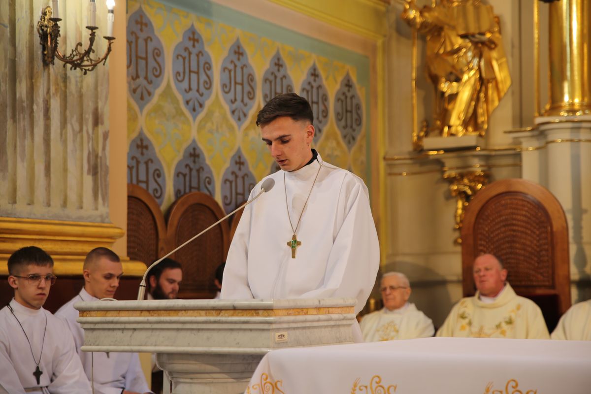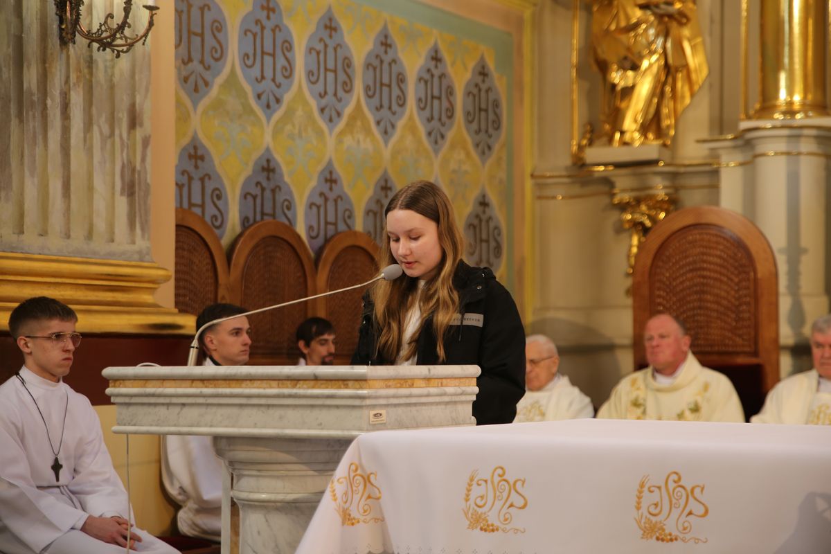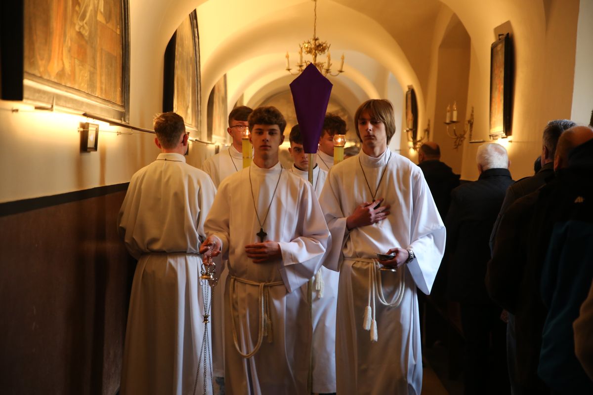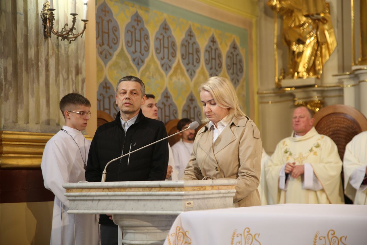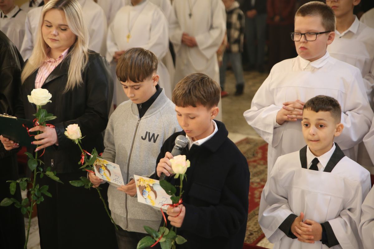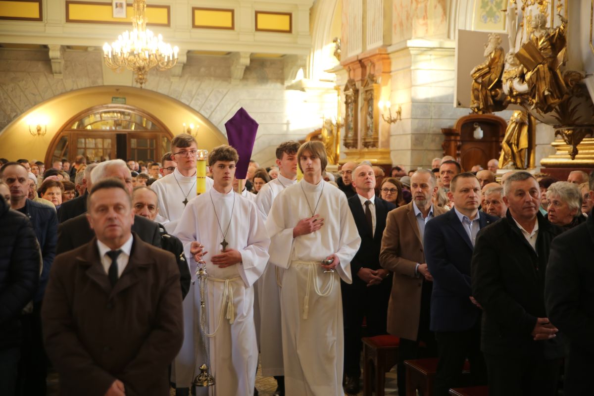 Wieczorem w Wielki Czwartek sprawowana była w naszym sanktuarium Msza św. Wieczerzy Pańskiej w której dziękowaliśmy Bogu za dar ustanowienia sakramentów Eucharystii i kapłaństwa. Liturgii przewodniczył ks. Tomasz Lis, proboszcz wraz z nim Mszę św. koncelebrowali wszyscy kapłani posługujący w naszym sanktuarium. Podczas liturgii do grona ministrantów zostało włączonych 8 chłopców, którzy przez kilka miesięcy, jako kandydaci, przygotowywali się do tej posługi liturgicznej. – Kandydaci do grona ministrantów rozpoczęli swoje przygotowania we wrześniu. W trakcie spotkań uczyli się, jak wygląda posługa ministranta podczas Mszy Świętej, poznawali nazwy poszczególnych jej części oraz paramentów liturgicznych. Zdobywali także praktyczne umiejętności związane ze służeniem przy ołtarzu. Formacja nie ograniczała się jednak wyłącznie do wiedzy i praktyki liturgicznej. Kandydaci uczyli się również współpracy, odpowiedzialności oraz wzajemnego wsparcia, co jest nieodłącznym elementem wspólnej służby – mówił ks. Tomasz Kopeć, wikariusz zajmujący formacją Liturgicznej Służby Ołtarza.