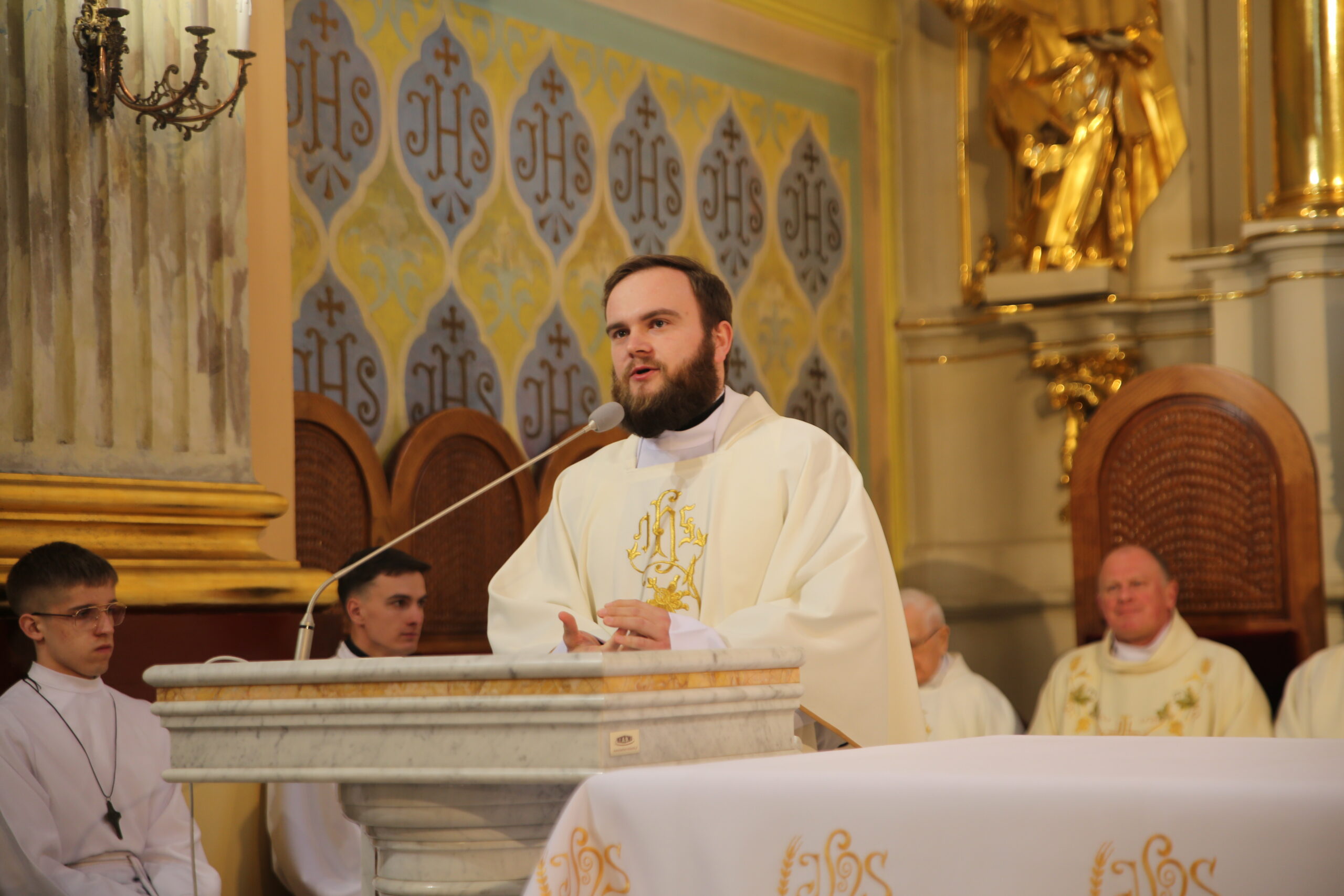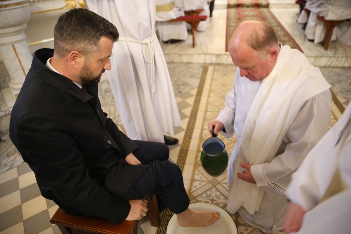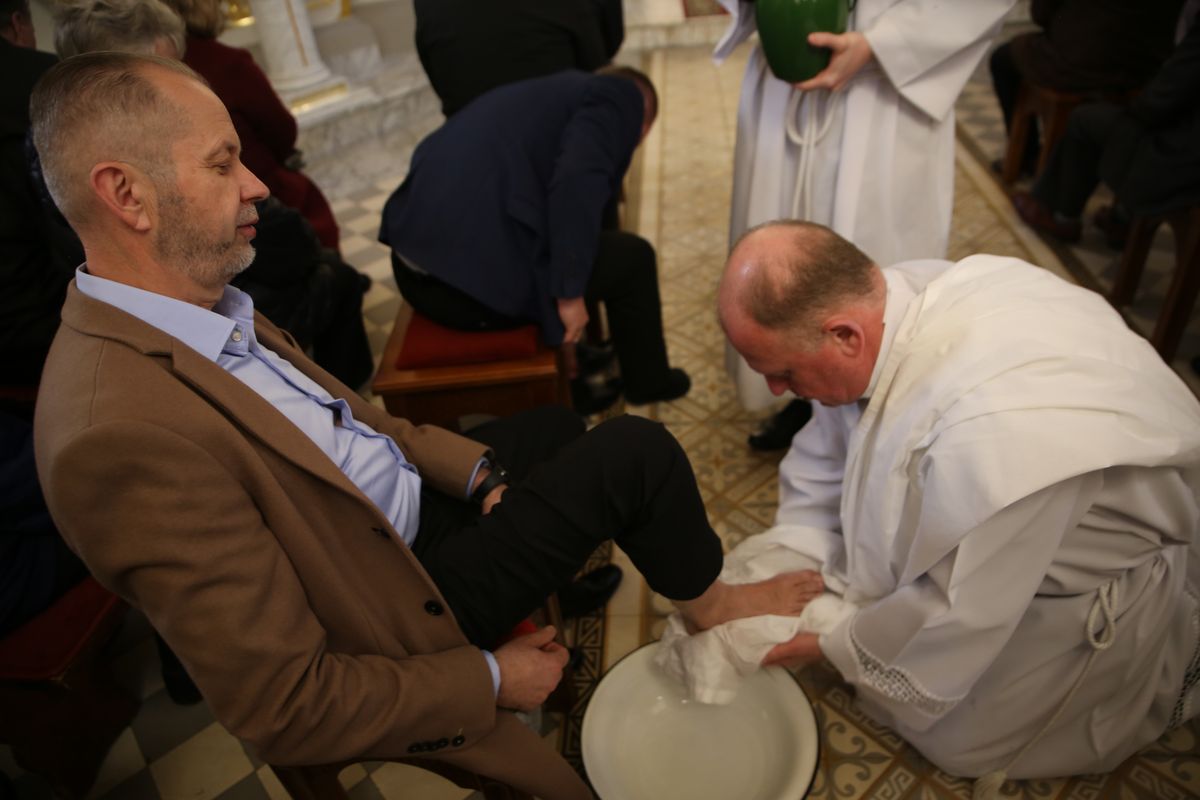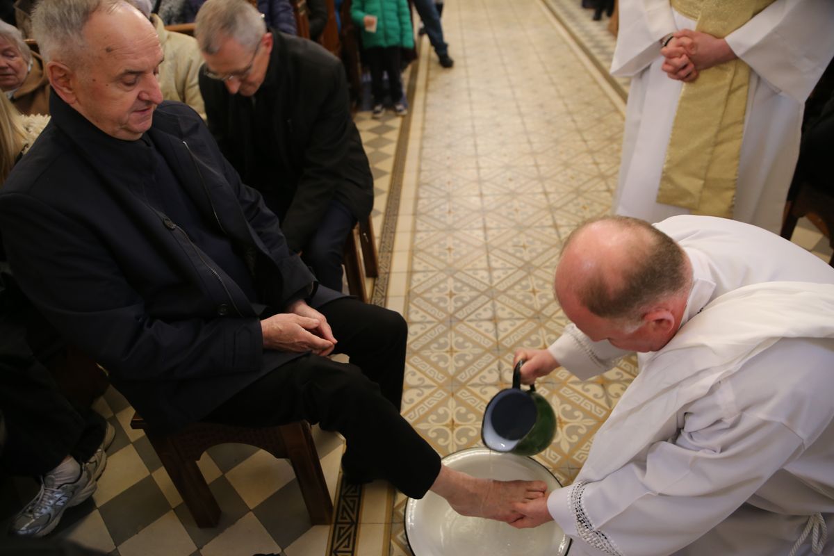 Podczas homilii o znaczeniu Eucharystii jako sakramentu żywej obecności Boga i kapłaństwa jako sakramentu służby mówił ks. Krzysztof Zych, wikariusz. Po homilii odbył się obrzęd obmycia nóg 12 mężczyznom, na pamiątkę obmycia nóg Apostołem przez Jezusa. Na zakończenie Mszy św. dzieci, młodzież oraz dorośli parafialnie złożyli naszym księżom życzenia z okazji dnia ustanowienia sakramentu kapłaństwa. Po Mszy św. Najświętszy Sakrament został przeniesiony do Ołtarza adoracji czyli tzw. Ciemnicy, gdzie w wielkoczwartkowy wieczór i w Wielki Piątek odbywała się modlitwa indywidualna wiernych. Asystę liturgiczną zapewniła Liturgiczna Służba Ołtarza oraz grupy formacyjne działające w parafii.