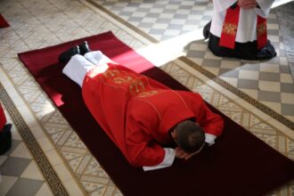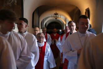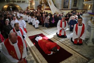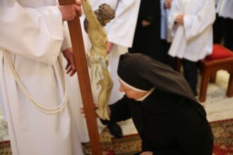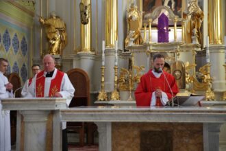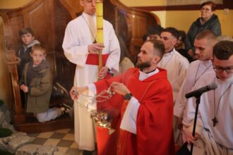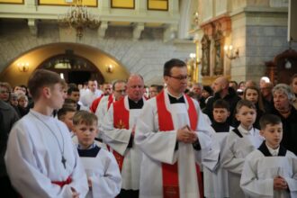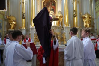 W Godzinie Miłosierdzia rozpoczęliśmy w naszym sanktuarium Liturgię Wielkiego Piątku. Modlitwę koronką do Bożego Miłosierdzia poprowadził ks. Tomasz Kopeć, wikariusz parafii. Następnie rozpoczęła się droga krzyżowa, której rozważania poprowadził ks. Tomasz Kopeć. Krzyż od stacji do stacji ponieśli kapłani posługujący w naszej parafii. Po zakończeniu nabożeństwa pasyjnego rozpoczęła się Liturgia Wielkiego Piątku, którą rozpoczęło procesjonalne wejście asysty liturgicznej wraz z kapłanami w ciszy do świątyni. Na początku nabożeństwa kapłan, który przewodniczył liturgii, leżał krzyżem na posadzce kościoła na znak uniżenia jakie Jezus podjął podczas swojej męki i śmierci na krzyżu.