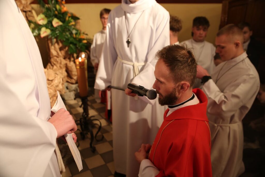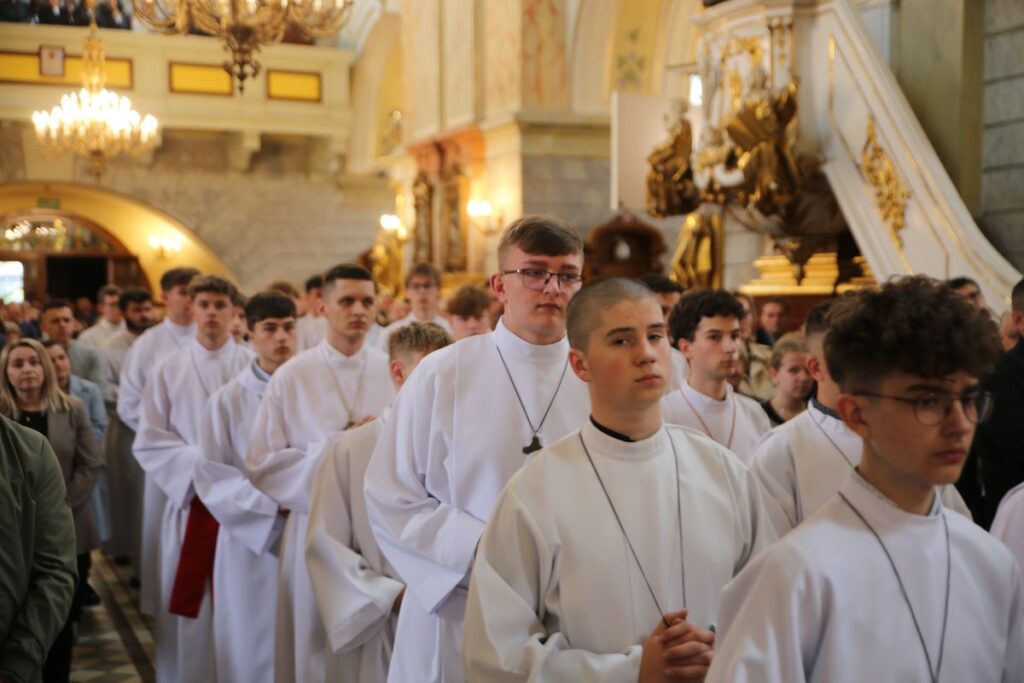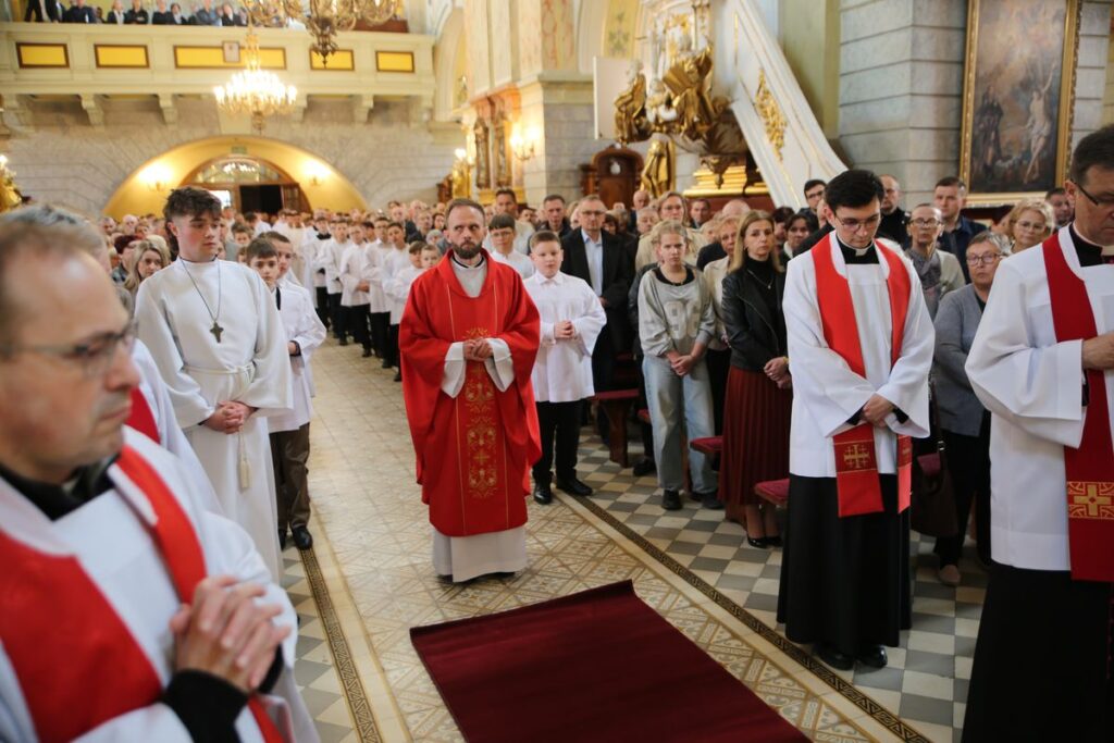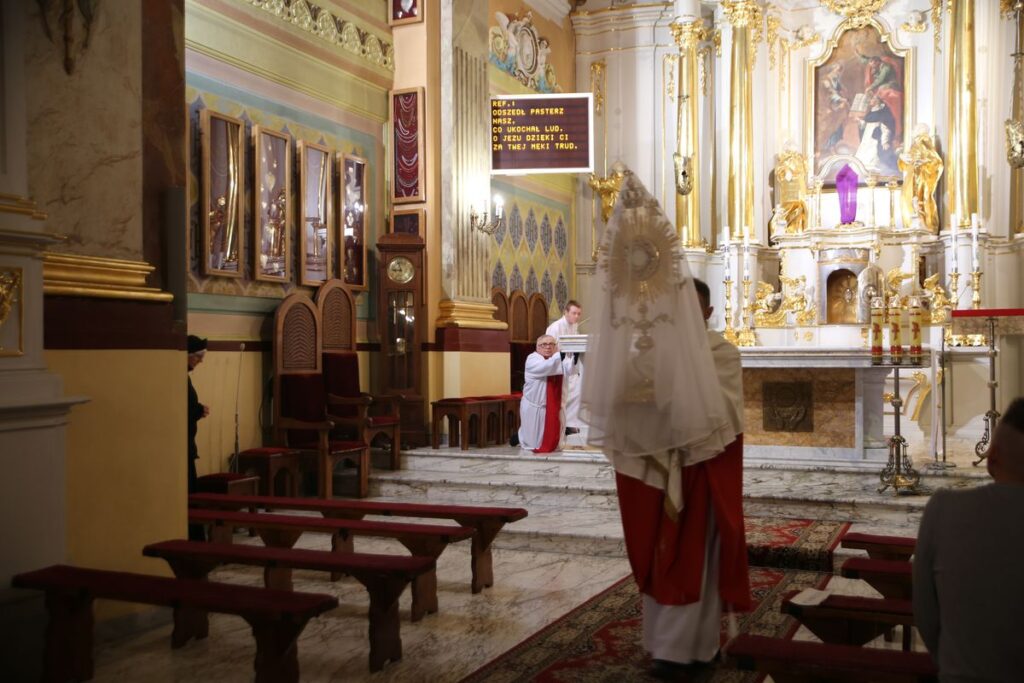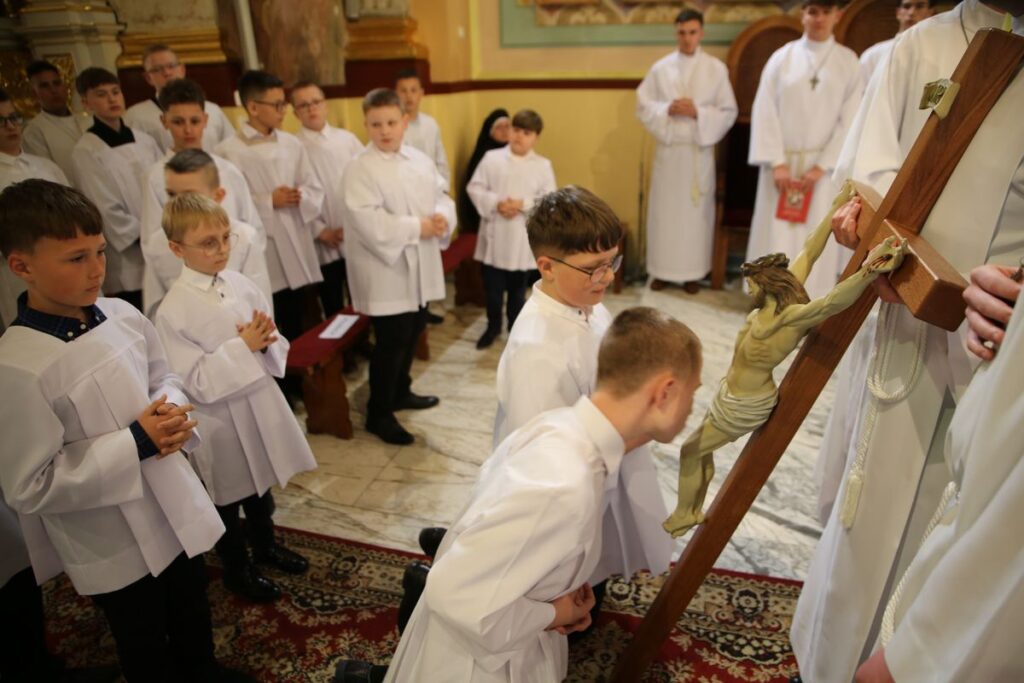 Po zakończeniu nabożeństwa pasyjnego rozpoczęła się Liturgia Wielkiego Piątku, którą rozpoczęło procesjonalne wejście asysty liturgicznej wraz z kapłanami w ciszy do świątyni. Na początku nabożeństwa ks. Tomasz Kopeć, który przewodniczył liturgii, leżał krzyżem na posadzce kościoła na znak uniżenia jakie Jezus podjął podczas swojej męki i śmierci na krzyżu. Uwieńczeniem liturgii Słowa Bożego było odśpiewanie Męki Pańskiej.