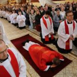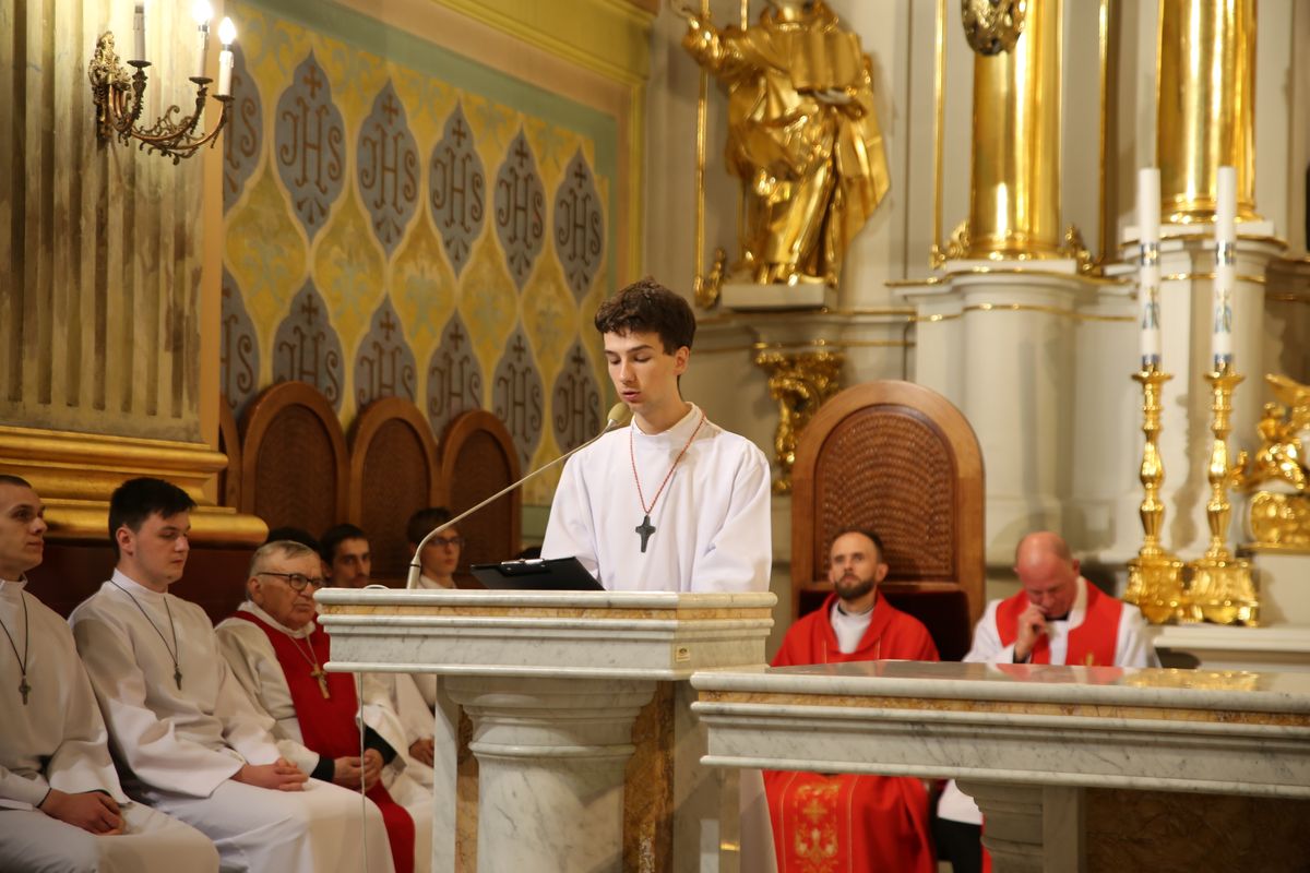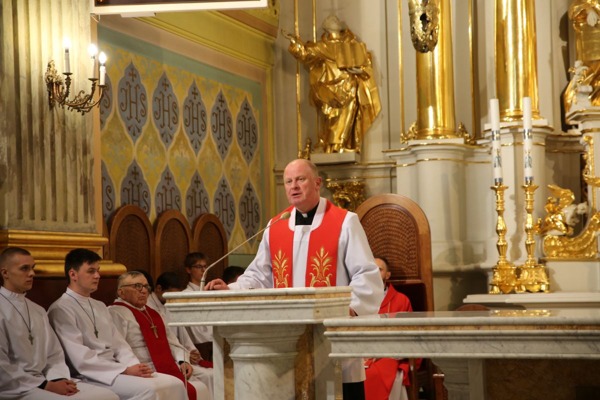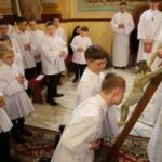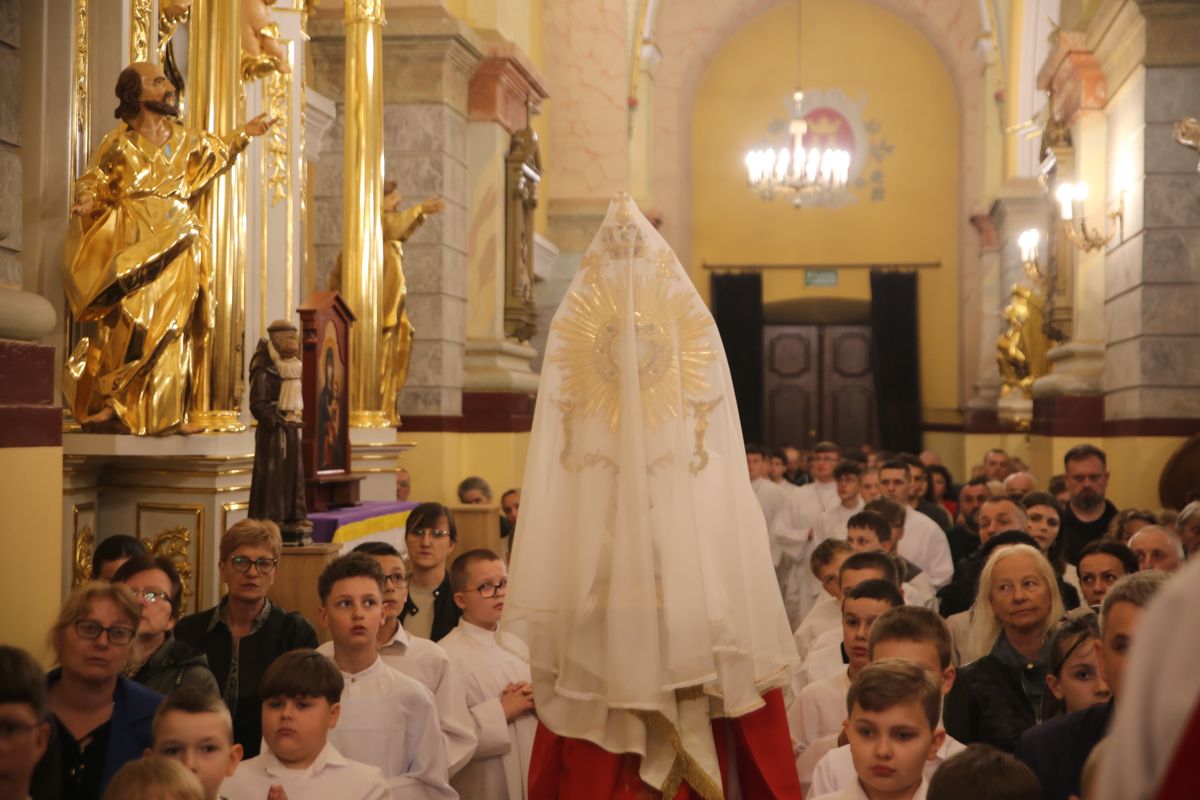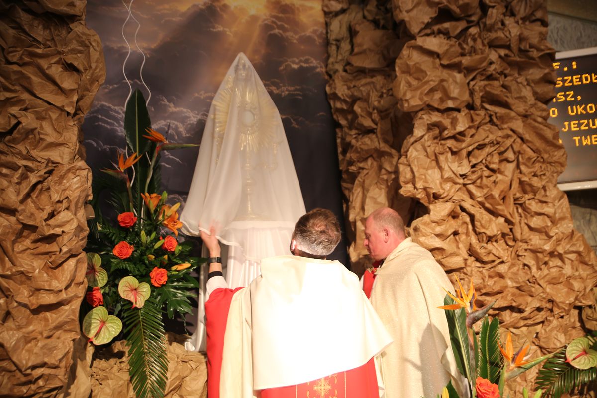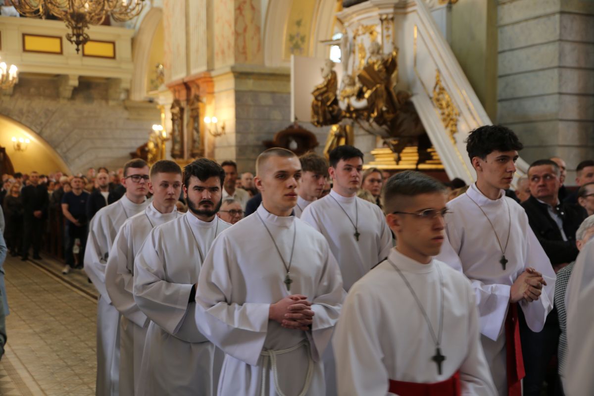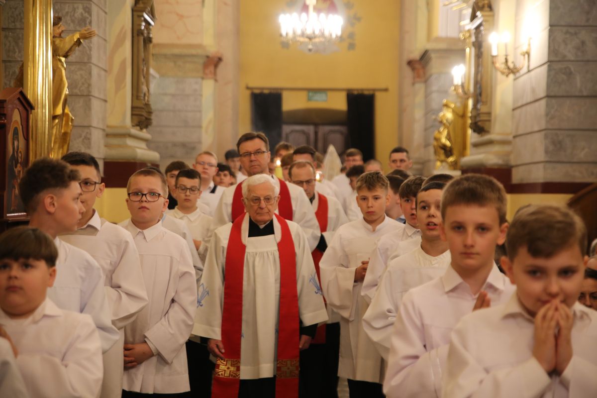 Po zakończeniu nabożeństwa pasyjnego rozpoczęła się Liturgia Wielkiego Piątku, którą rozpoczęło procesjonalne wejście asysty liturgicznej wraz z kapłanami w ciszy do świątyni. Na początku nabożeństwa ks. Tomasz Kopeć, który przewodniczył liturgii, leżał krzyżem na posadzce kościoła na znak uniżenia jakie Jezus podjął podczas swojej męki i śmierci na krzyżu. Uwieńczeniem liturgii Słowa Bożego było odśpiewanie Męki Pańskiej.