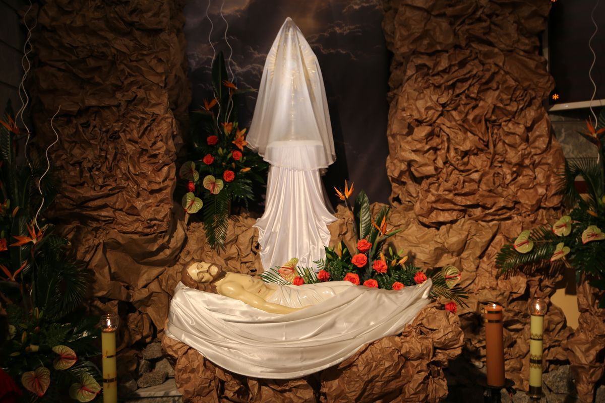 Podczas homilii ksiądz proboszcz wskazał na krzyż Chrystusa jako lekcję wielkiej i ofiarnej miłości jaką mamy wypełniać w naszym życiu. Kolejnym elementem liturgii była uroczysta modlitwa wiernych. Następnie odbyła się uroczyste odsłonięcie i adoracja krzyża. Kolejnym elementem liturgii była Komunia święta, zaś po niej Najświętszy Sakrament przeniesiono do Grobu Pańskiego, przy którym parafianie czuwali na modlitwie do północy.
