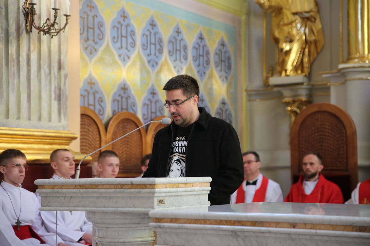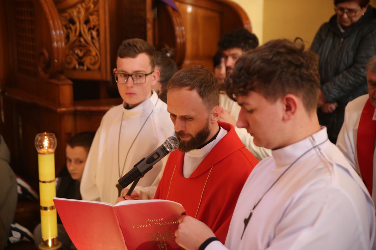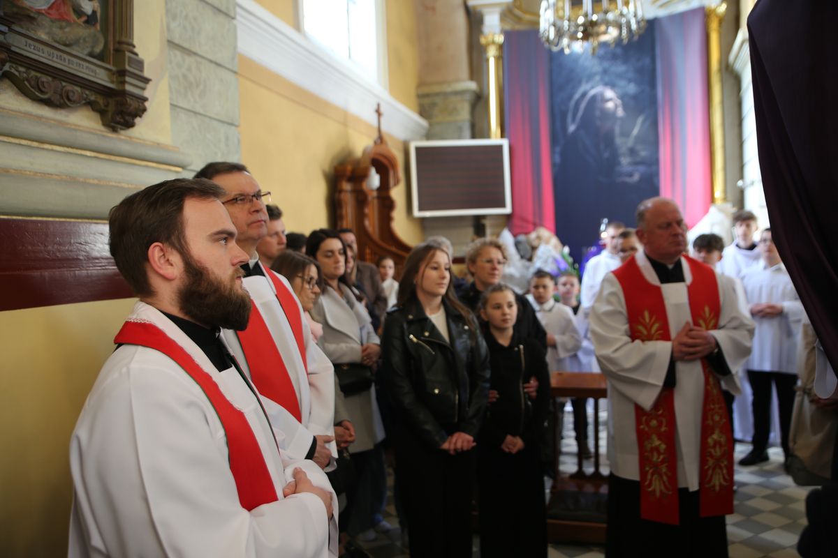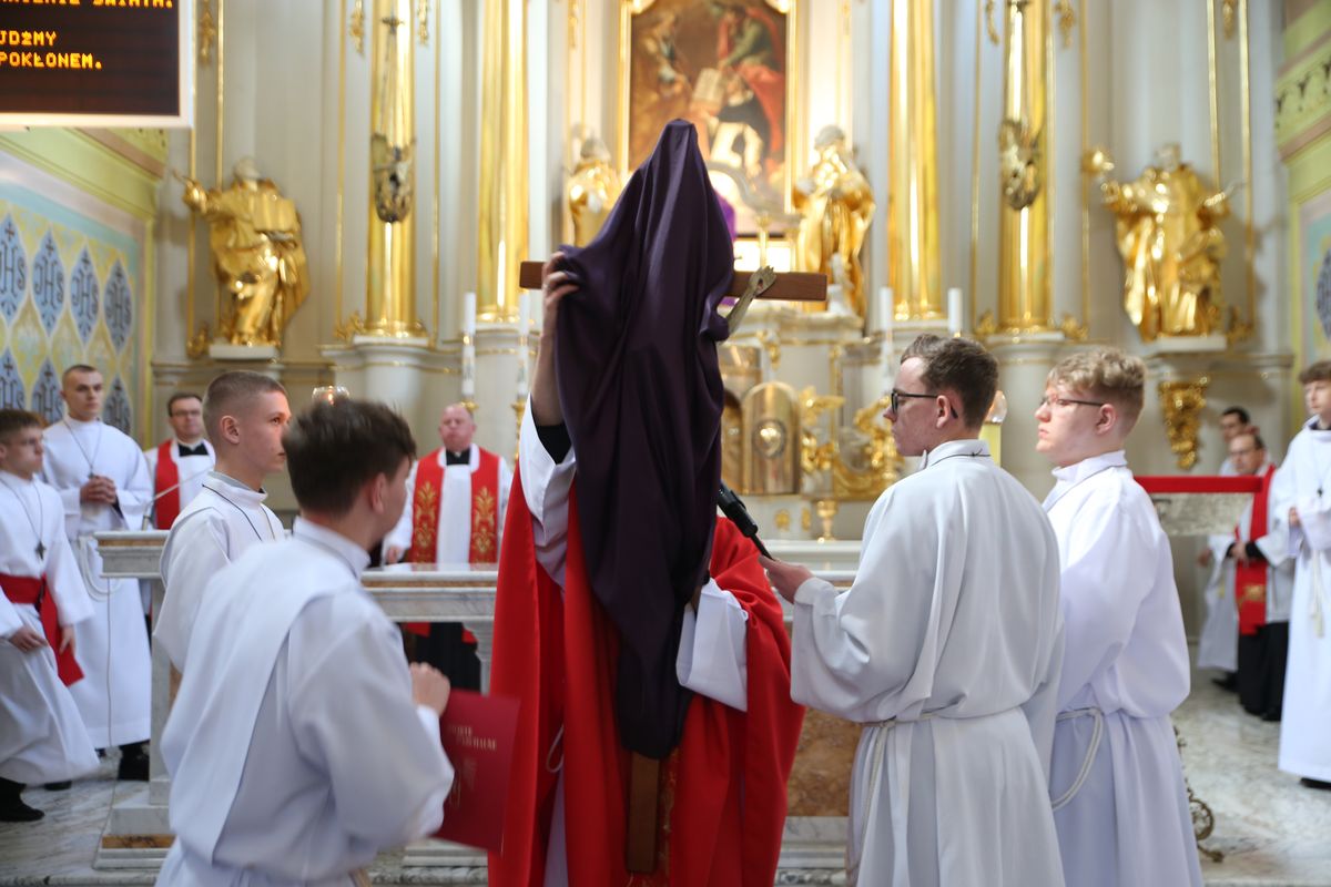 W Godzinie Miłosierdzia rozpoczęliśmy w naszym sanktuarium Liturgię Wielkiego Piątku. Modlitwę koronką do Bożego Miłosierdzia poprowadził ks. Tomasz Kopeć, wikariusz parafii. Następnie rozpoczęła się droga krzyżowa, której rozważania poprowadził ks. Tomasz Kopeć. Krzyż od stacji do stacji ponieśli kapłani posługujący w naszej parafii. Po zakończeniu nabożeństwa pasyjnego rozpoczęła się Liturgia Wielkiego Piątku, którą rozpoczęło procesjonalne wejście asysty liturgicznej wraz z kapłanami w ciszy do świątyni. Na początku nabożeństwa kapłan, który przewodniczył liturgii, leżał krzyżem na posadzce kościoła na znak uniżenia jakie Jezus podjął podczas swojej męki i śmierci na krzyżu.