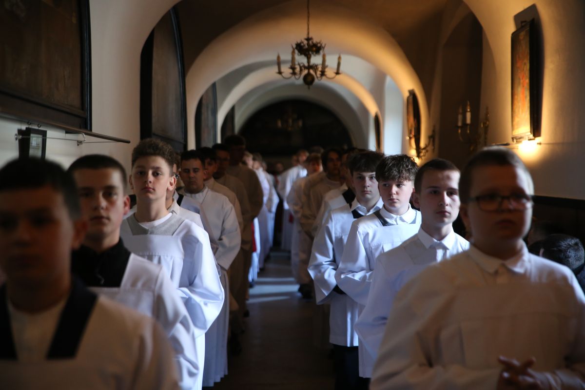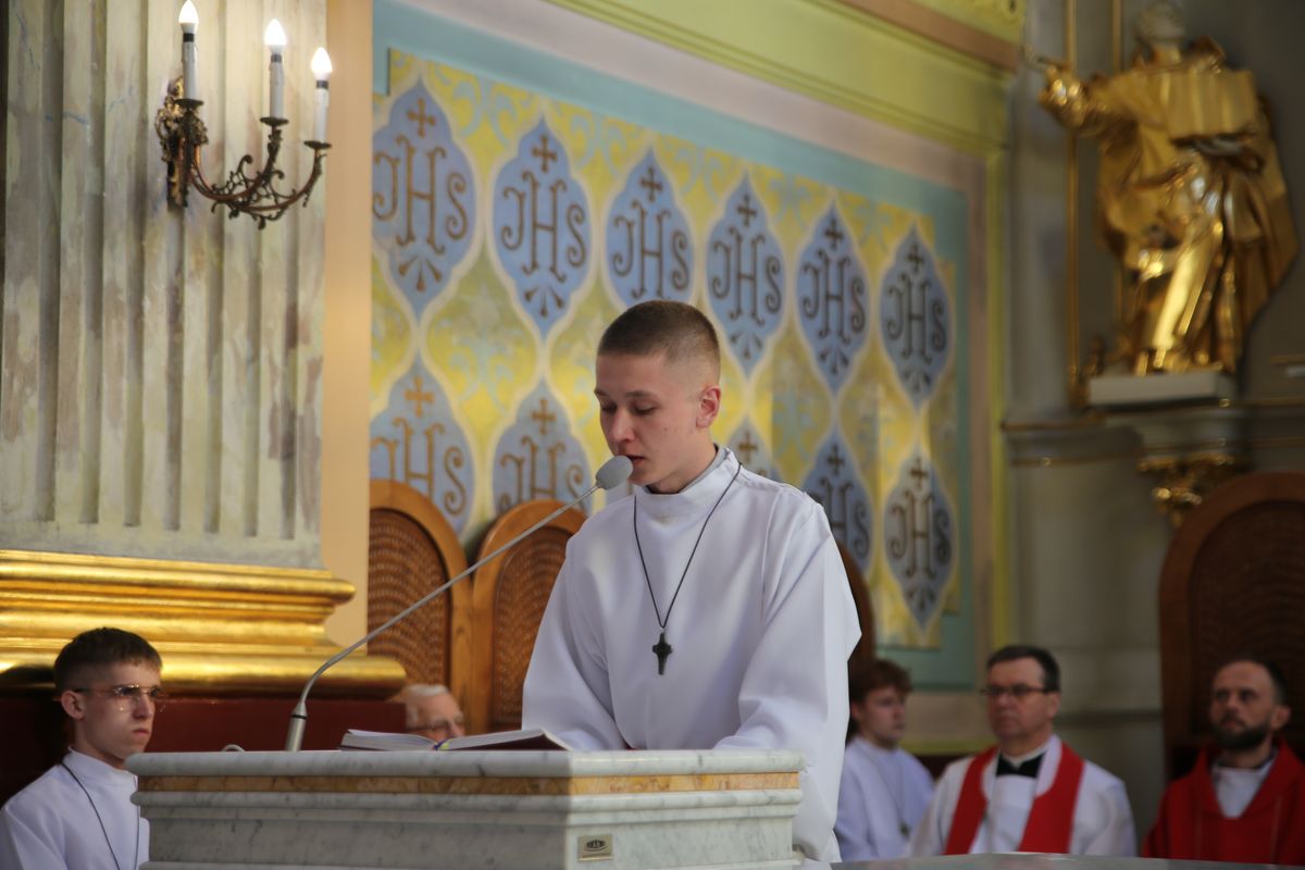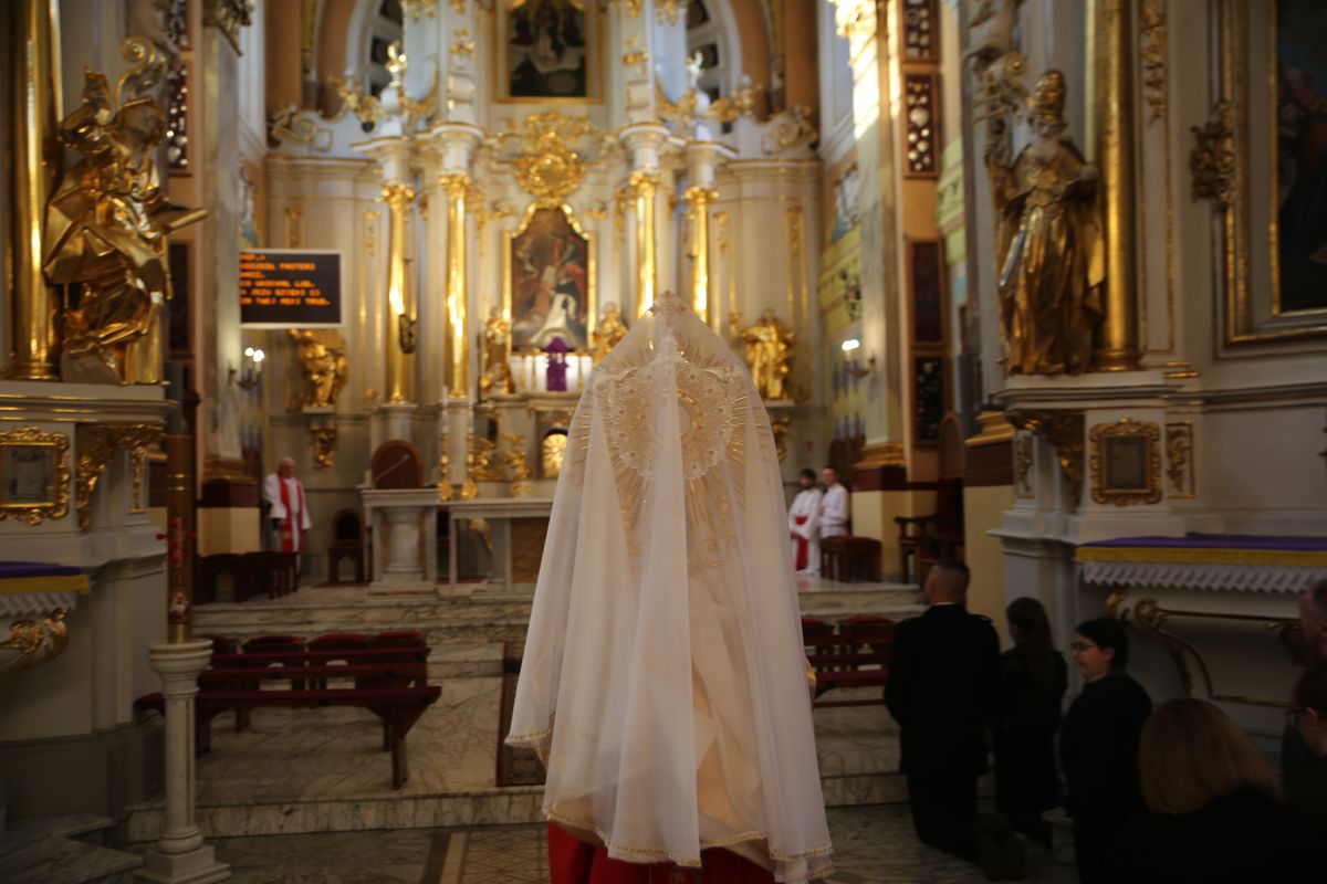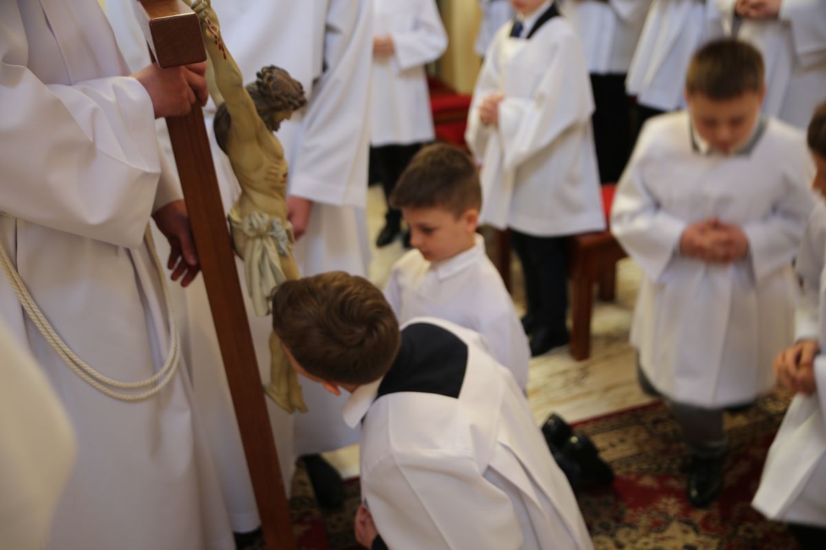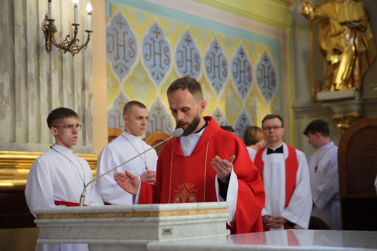 W Godzinie Miłosierdzia rozpoczęliśmy w naszym sanktuarium Liturgię Wielkiego Piątku. Modlitwę koronką do Bożego Miłosierdzia poprowadził ks. Tomasz Kopeć, wikariusz parafii. Następnie rozpoczęła się droga krzyżowa, której rozważania poprowadził ks. Tomasz Kopeć. Krzyż od stacji do stacji ponieśli kapłani posługujący w naszej parafii. Po zakończeniu nabożeństwa pasyjnego rozpoczęła się Liturgia Wielkiego Piątku, którą rozpoczęło procesjonalne wejście asysty liturgicznej wraz z kapłanami w ciszy do świątyni. Na początku nabożeństwa kapłan, który przewodniczył liturgii, leżał krzyżem na posadzce kościoła na znak uniżenia jakie Jezus podjął podczas swojej męki i śmierci na krzyżu.