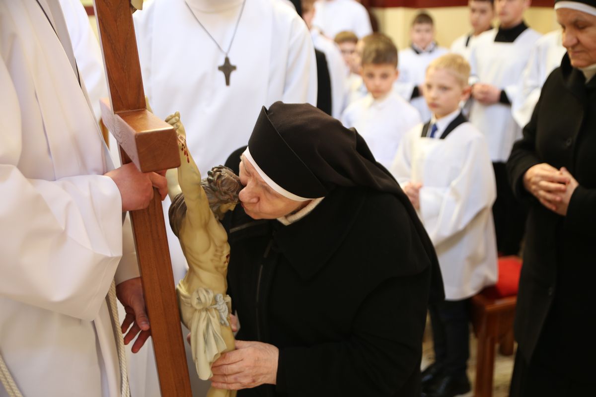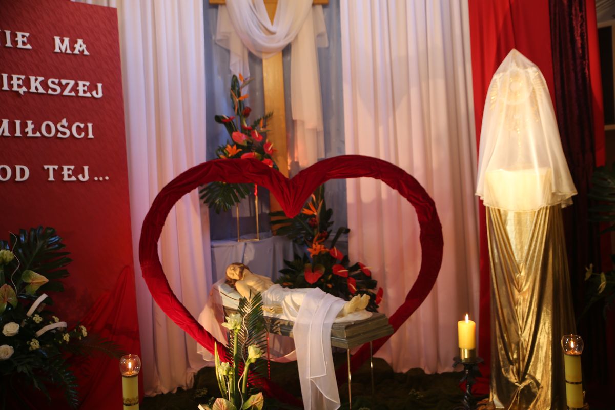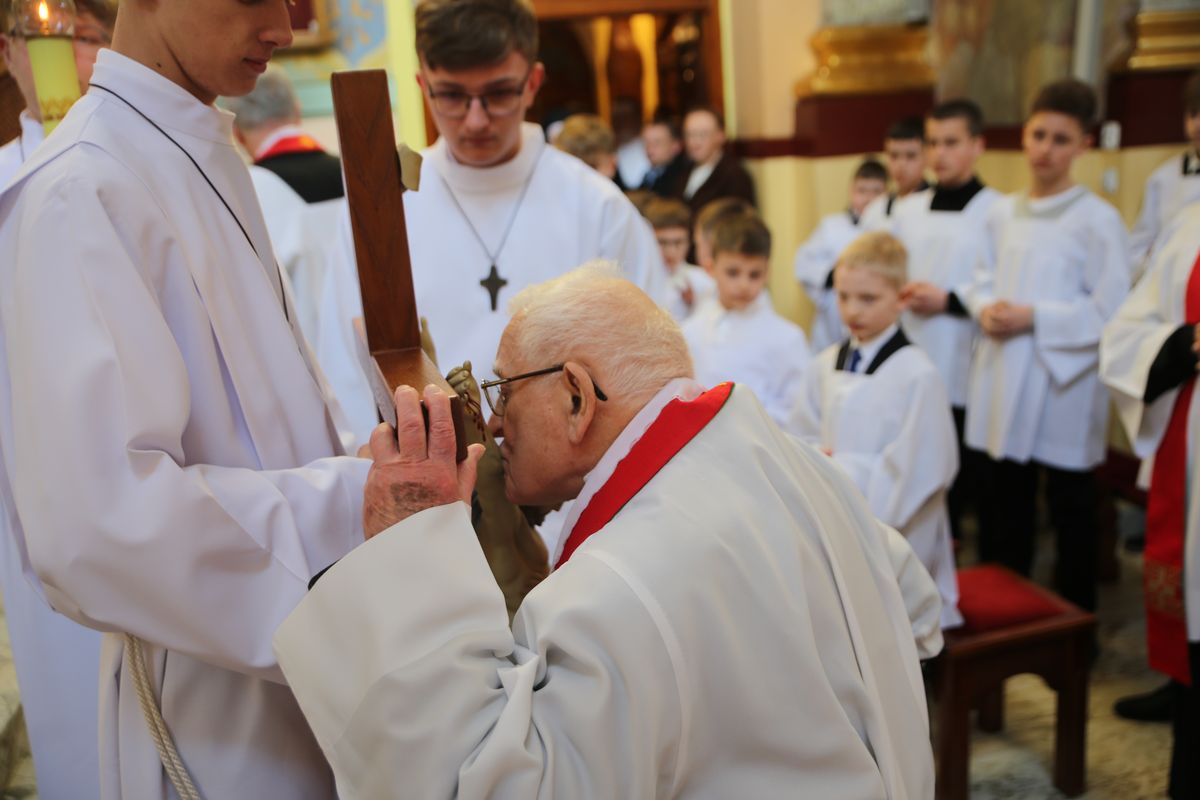 Uwieńczeniem liturgii Słowa Bożego było odczytanie Męki Pańskiej. Podczas homilii ksiądz proboszcz wskazał na krzyż Chrystusa jako lekcję wielkiej i ofiarnej miłości jaką mamy wypełniać w naszym życiu. Kolejnym elementem liturgii była uroczysta modlitwa wiernych. Następnie odbyła się uroczyste odsłonięcie i adoracja krzyża znaku naszego odkupienia. Kolejnym elementem liturgii była Komunia święta, zaś po niej Najświętszy Sakrament przeniesiono do Grobu Pańskiego, przy którym parafianie czuwali na modlitwie do północy.