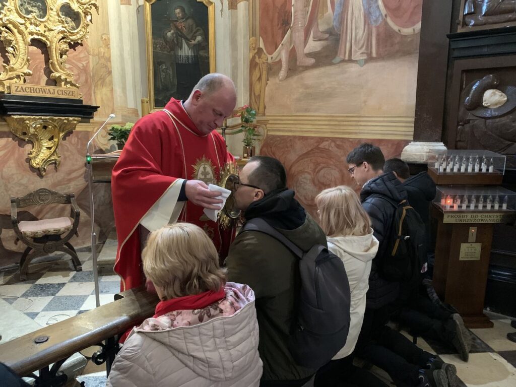 Grupa Wojowników Maryi wraz z rodzinami przeżywała Rejonowy Dzień Formacji na wielkopostnym pielgrzymowaniu. – Udaliśmy się do Sanktuarium relikwii Drzewa Krzyża Świętego. Rozpoczęliśmy od przejścia drogą krzyżową wychodząc po trakcie królewskim do sanktuarium. Następnie uczestniczyliśmy we Mszy św. w kaplicy relikwii. Wojownicy mieli okazję zwiedzić sanktuarium i poznać jego burzliwe dzieje – mówił Henryk Gzik, lider grupy. Kolejnym przystankiem pielgrzymowania było sanktuarium Matki Bożej Bolesnej Pani Świętokrzyskiej w Kałkowie. – Dziękujemy naszym rodzinom za wspólnie spędzony czas i modlitwę – dodali Wojownicy Maryi.