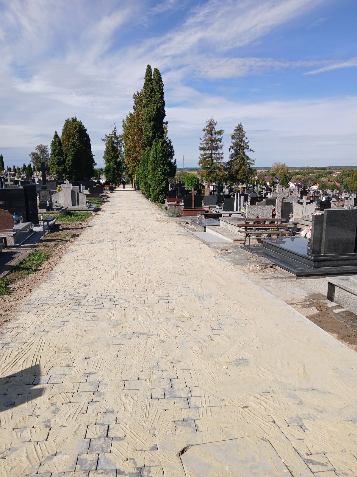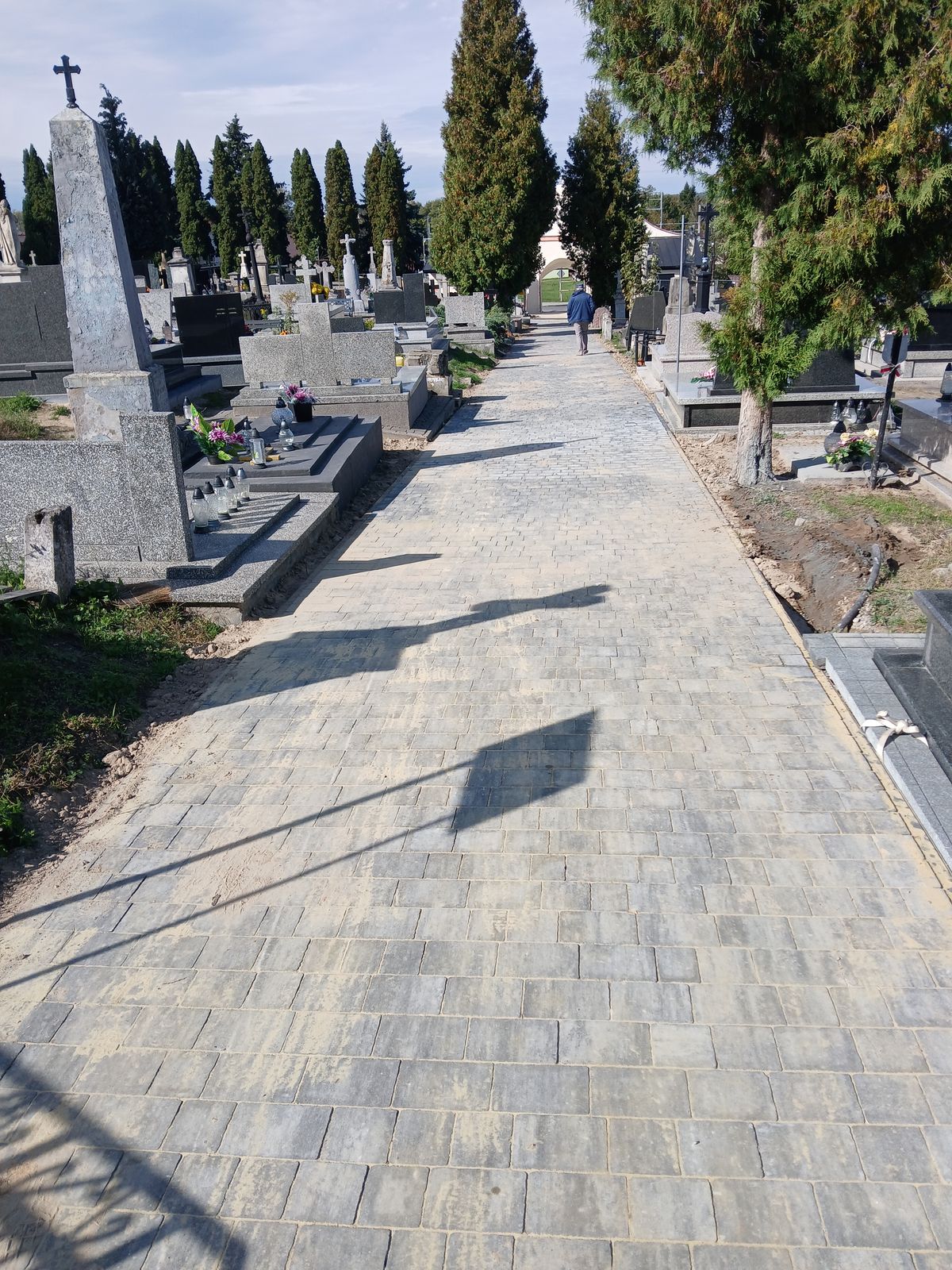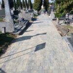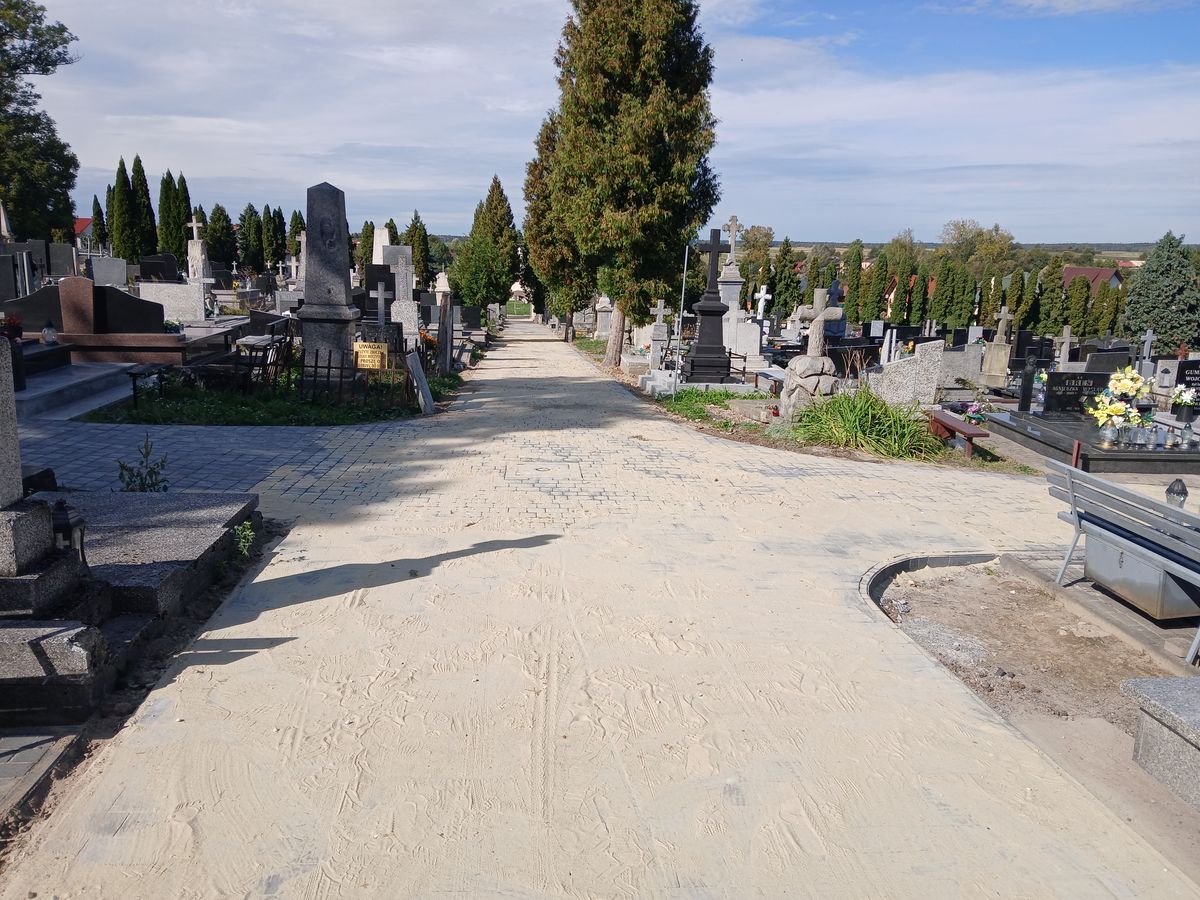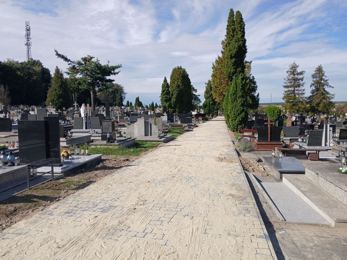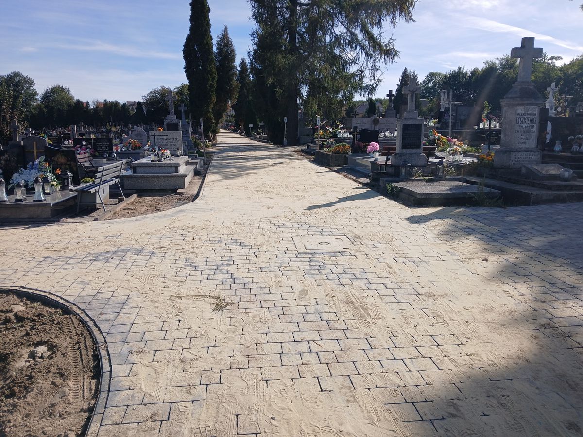 W ramach projektu wykonano także remont alei głównej cmentarza. Zgodnie z projektem najpierw usunięto nawierzchnię z kostki betonowej i asfaltowej, rozebrano stare obrzeża oraz wykonano prace ziemne pod budowę nowej alei. Po wykonaniu podbudowy z gruntu stabilizowanego cementem aktualnie układana jest nawierzchnia z kostki betonowej. – Remont alei głównej cmentarza nie zmienia stanu zagospodarowania terenu i nie ma wpływu na ustalone wskaźniki planistyczne i został zaprojektowany tak, aby harmonijnie wpisać się otoczenie historycznej nekropolii – podkreślił ks. Tomasz Lis.