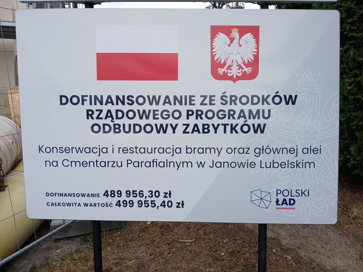 Zakończono działania przy realizacji zadania renowacji i konserwacji zabytkowej bramy cmentarnej oraz alei głównej cmentarza parafialnego. Z końcem września zostały zakończone prace związane z realizacją zadania „Renowacja i restauracja bramy oraz alei głównej na Cmentarzu parafialnym w Janowie Lubelskim”. Projekt realizowany przez naszą parafię został dofinansowany z Rządowego Programu Odbudowy Zabytków Polski Ład oraz przez Starostwo Powiatowe w Janowie Lubelskim.