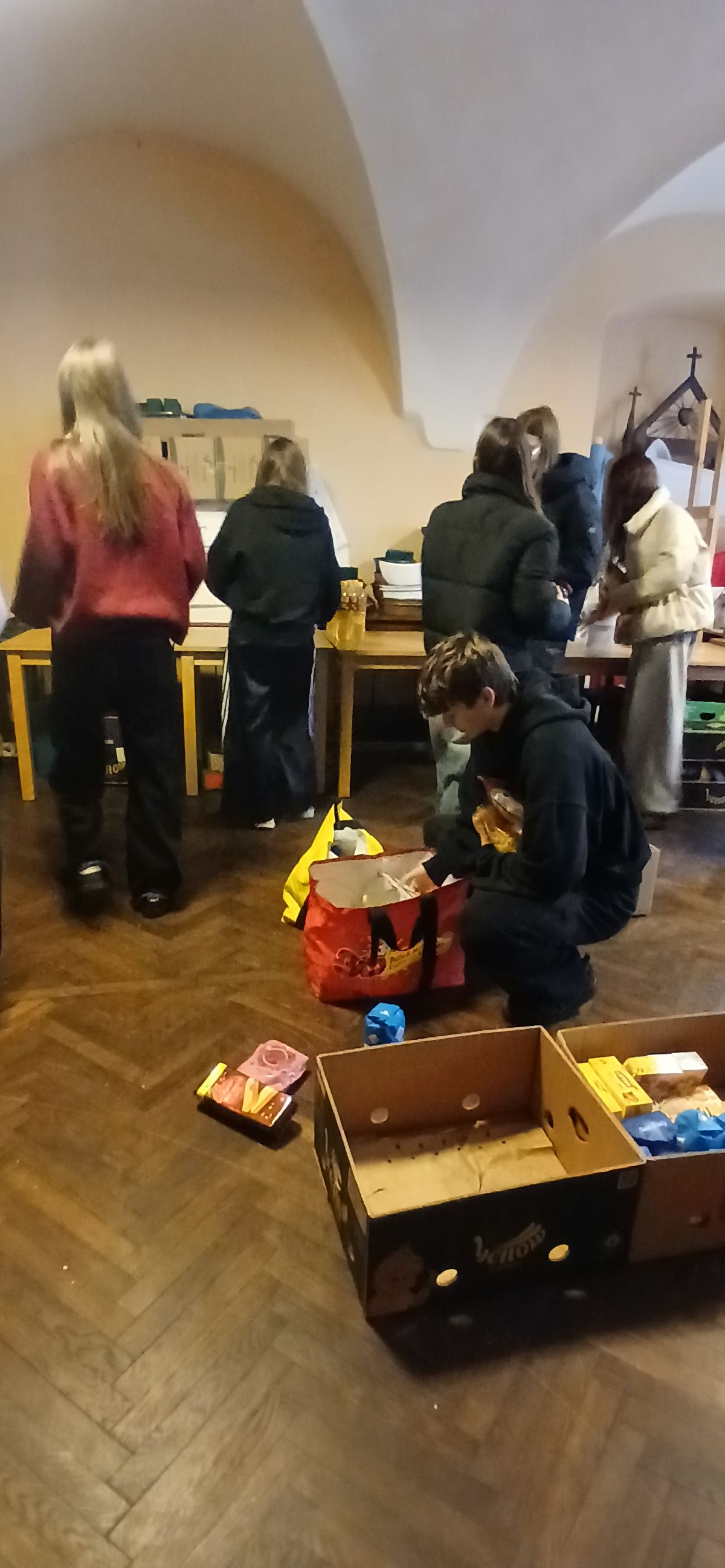 Młodzi wolontariusze kwestowali w sklepach, kolejne ekipy obsługiwały transport przekazanej żywności i prowadziły jej segregację oraz przygotowywały świąteczne paczki. – Przygotowaliśmy blisko 100 rodzinnych paczek po około 12 kg produktów, które trafią do osób ubogich i potrzebujących w naszej parafii, w mieście i okolicy Janowa Lubelskiego. Pragnę podziękować wszystkim zaangażowanym w to piękne dzieło. Dziś, gdy przypada dzień św. Mikołaja, każdy z nas mógł być tym świętym Mikołajem, który niesie prezent osobie potrzebujące, dzieląc się żywnością, pomagając przy zbiórce czy wreszcie dostarczając paczki z pomocą do osób ubogich. Dzięki waszej pracy płynącej z głębi serca mogliśmy stworzyć wielkie dzieło miłosierdzia – podkreślił ks. Tomasz Lis, proboszcz.