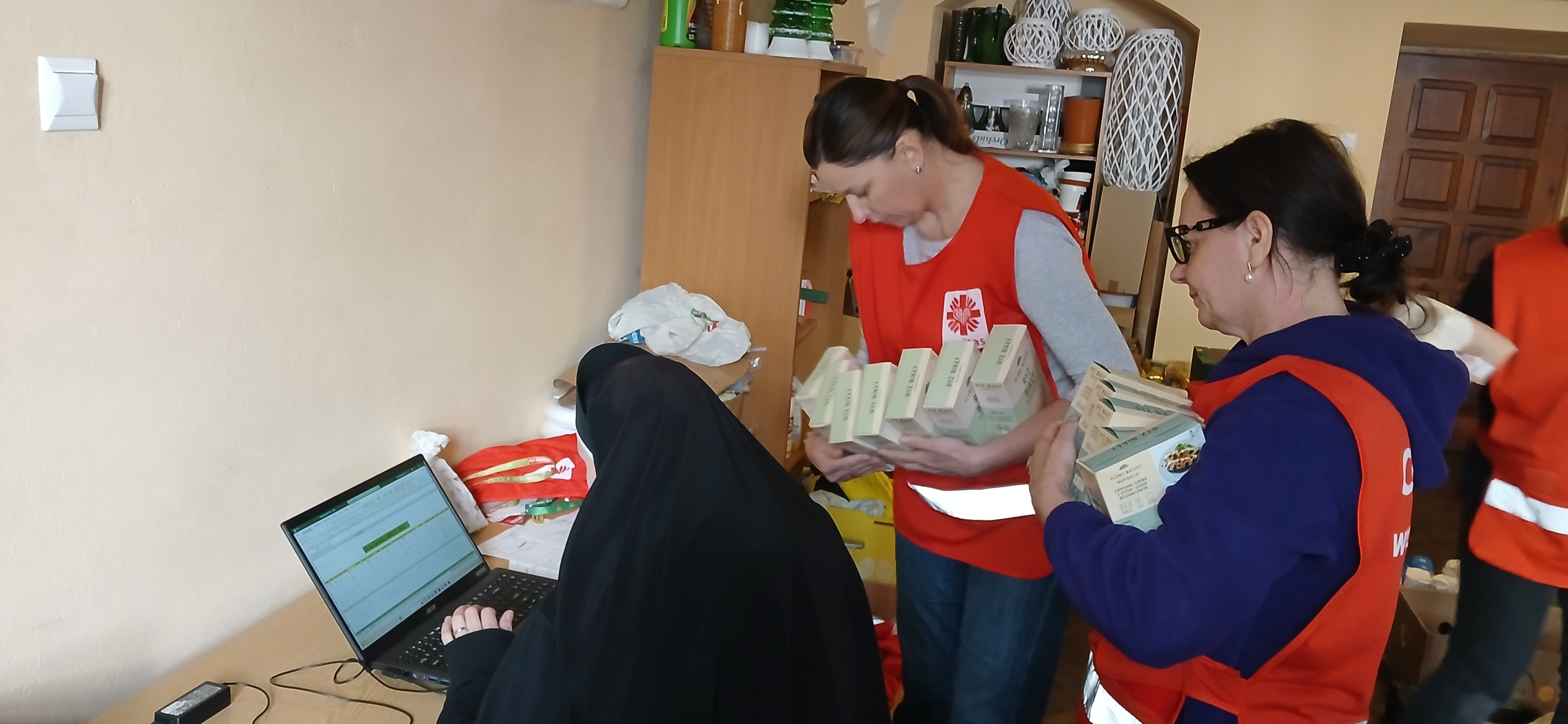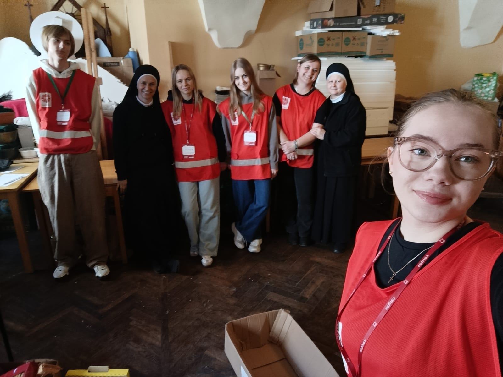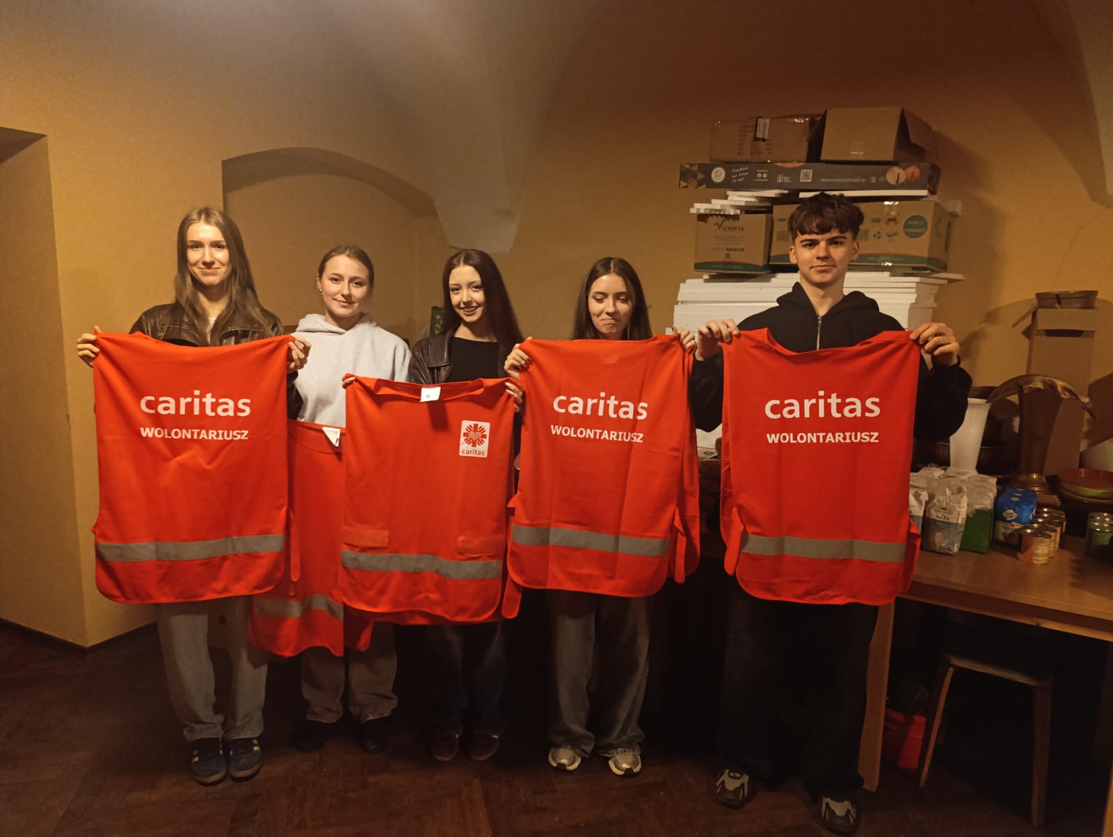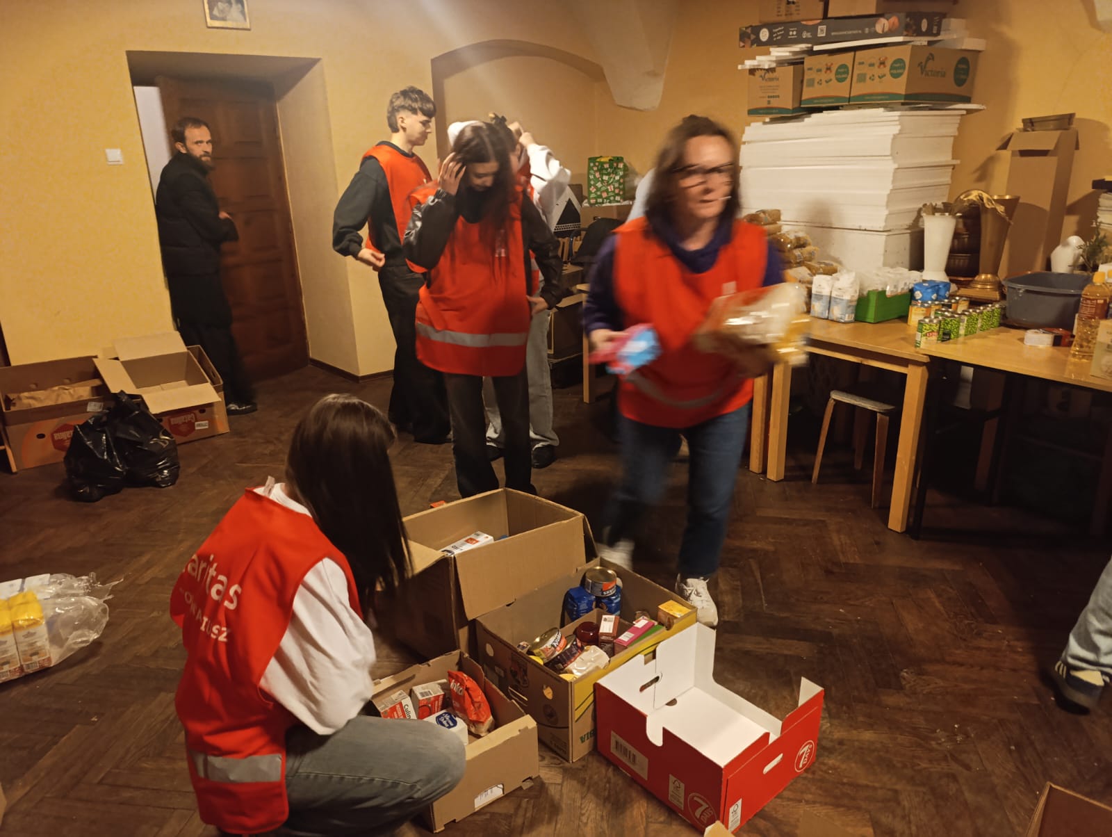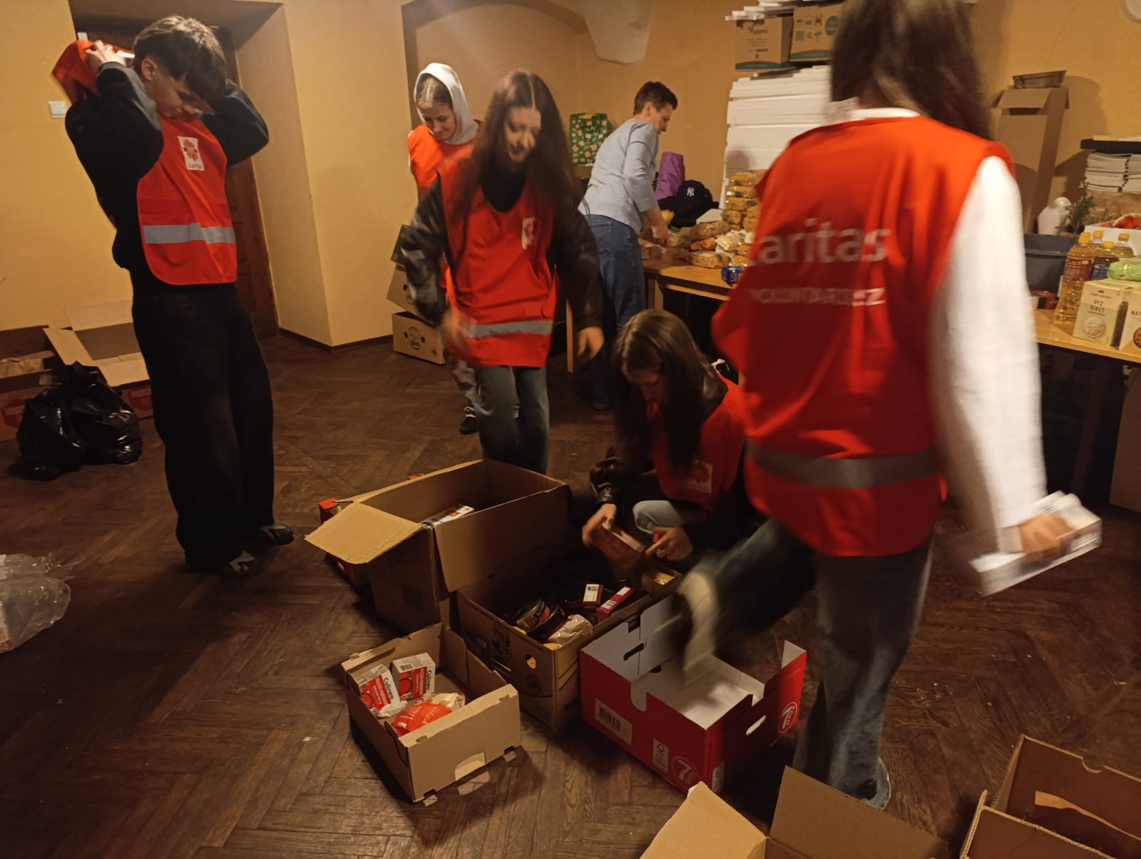 – Jesteśmy tutaj, aby pomóc innym dobrze przeżyć święta. Jedni ofiarują żywność, my ją zbieramy, segregujemy, przygotowujemy paczki a inni dostarczą do osób, które potrzebują wsparcia. Niby nic wielkiego, a jednak wspólne wielkie dzieło – podkreślali młodzi wolontariusze kwestujący w janowskich sklepach Biedronka i Stokrotka. Przez dwa dni trwała kwesta w janowskich marketach, podczas której wolontariusze z I Liceum Ogólnokształcącego im. Bohaterów Porytowego Wzgórza, Zespołu Szkół im. W. Witosa, z Zespołu Szkolno-Przedszkolnego w Janowie Lubelskim oraz z Duszpasterstwa Kobiet, Wojowników Maryi i Stowarzyszenia Motocyklowego Wrzesień39 prowadzili zbiórkę żywności o przedłużonej przydatności do spożycia, segregowali dary i przygotowywali świąteczne paczki. – Osoby robiące zakupy dostawały ulotkę co mogą przekazać potrzebującym i ubogim. Bardzo wiele osób bardzo życzliwie odpowiadało na naszą zachętę do włączenia się do akcji – podkreślali wolontariusze. Akcję koordynowały siostry Maksymiliana Lik i Pia Waldon ze Zgromadzenia Sióstr Opatrzności Bożej posługujące w janowskiej parafii. W zbiórkę zaangażowali się także kapłani posługujący w janowskim sanktuarium. Młodzi wolontariusze kwestowali w sklepach, kolejne ekipy obsługiwały transport przekazanej żywności i prowadziły jej segregację oraz przygotowywały świąteczne paczki.